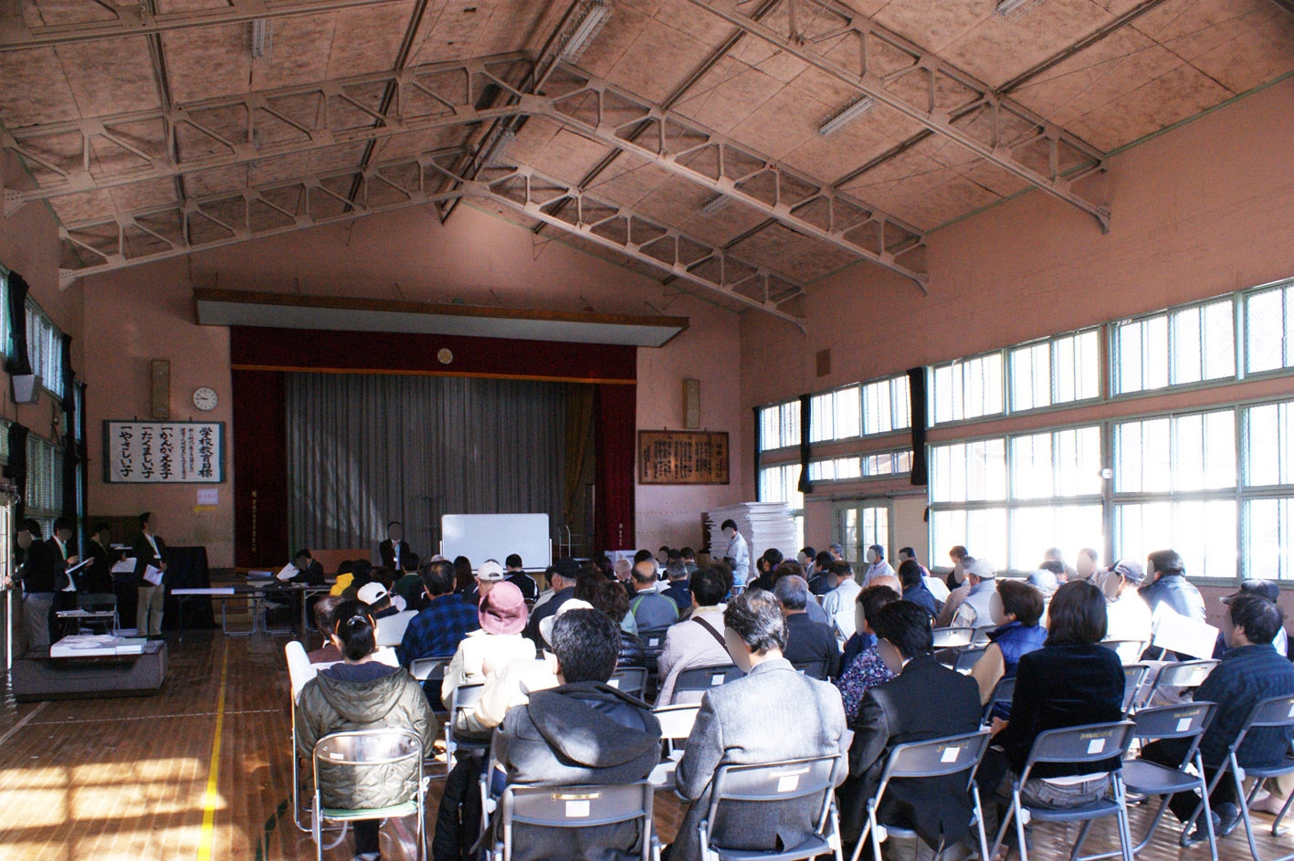 安渡小学校体育館で開催された第3回安渡地域復興協議会の様子