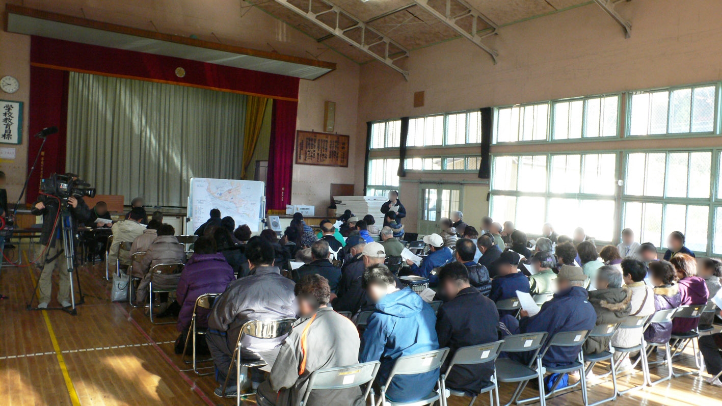 安渡小学校体育館で開催された第4回安渡地域復興協議会の様子