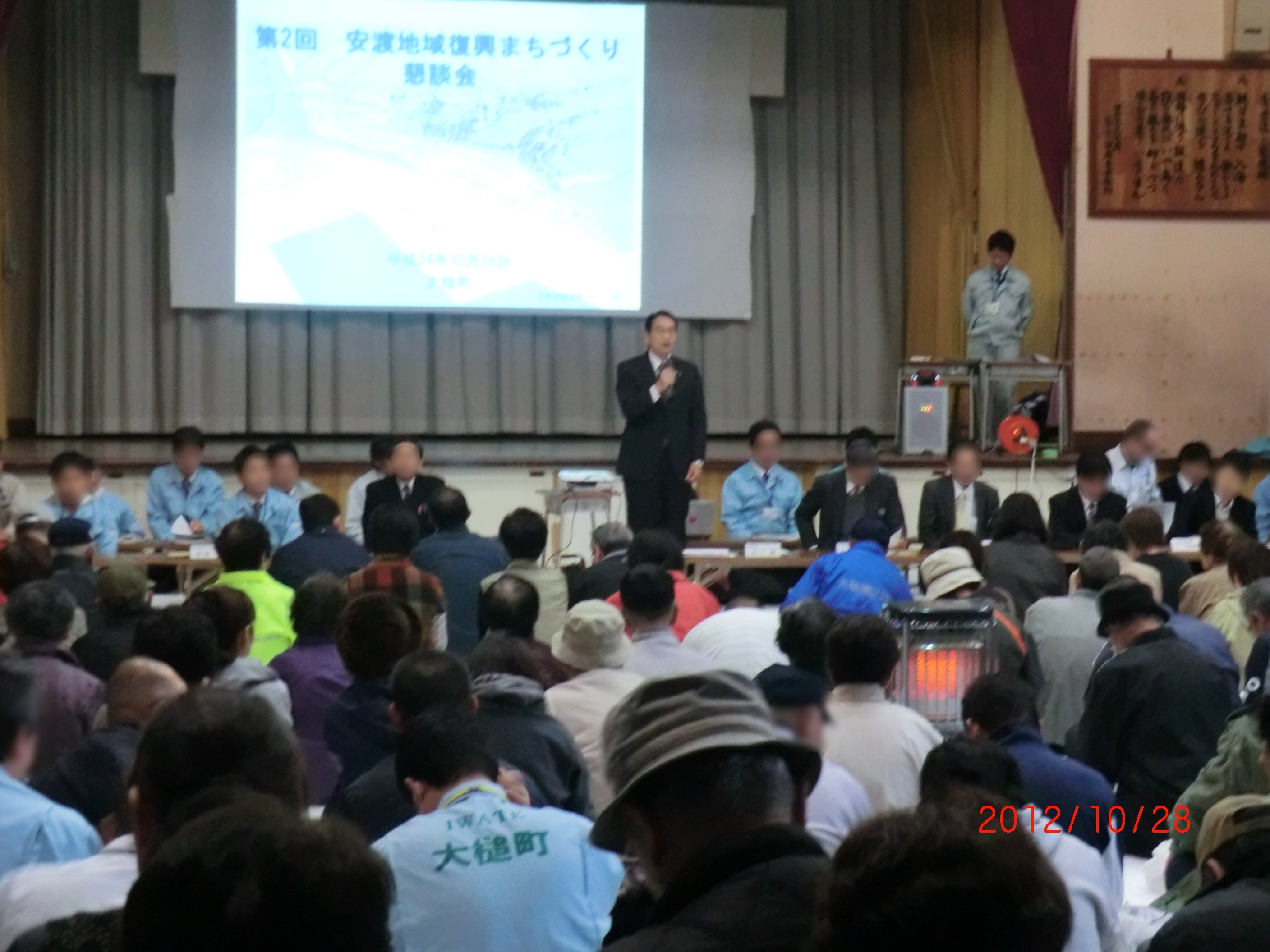 安渡小学校体育館で開催された第2回安渡地域復興まちづくり懇談会の様子