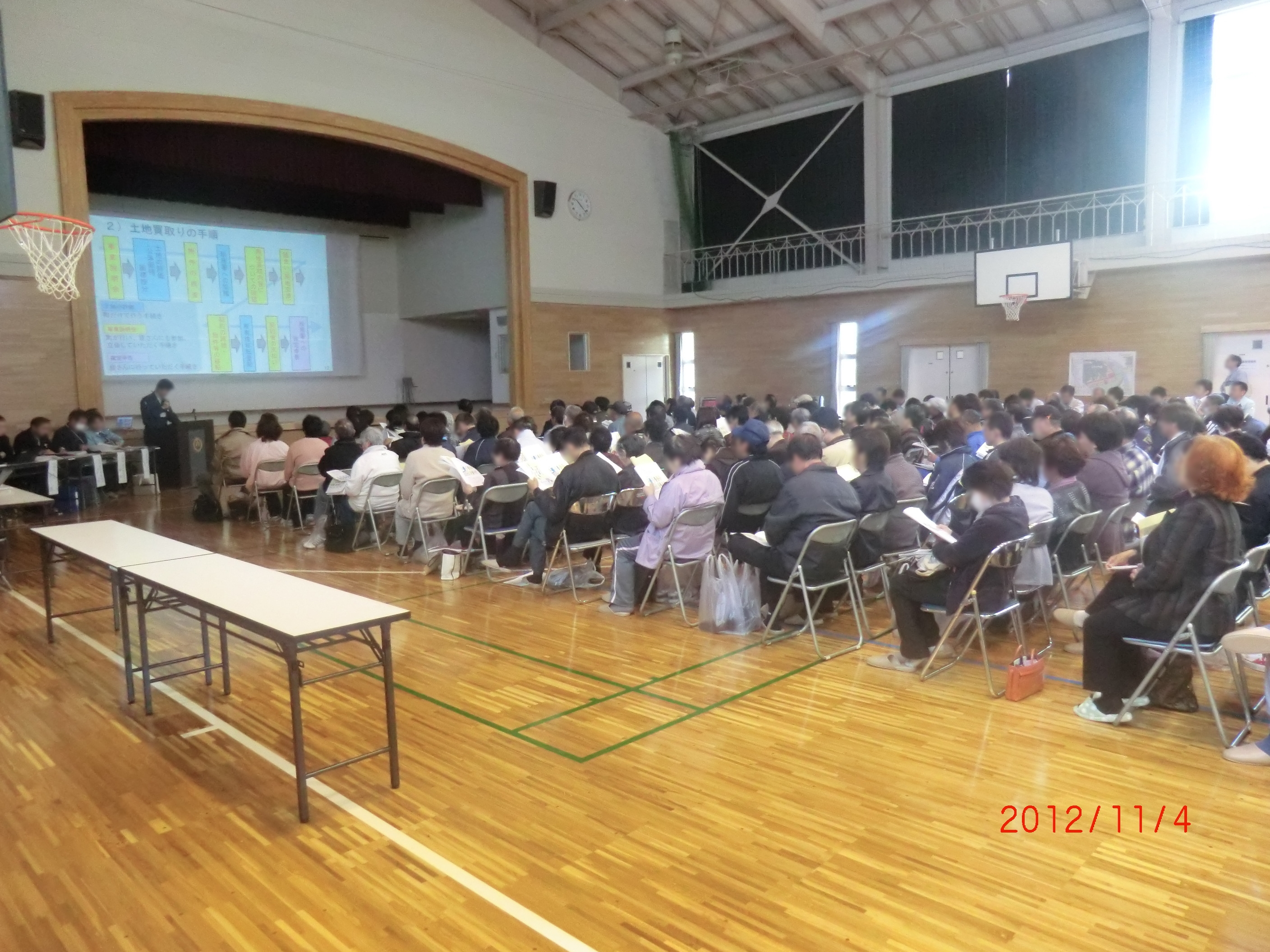 役場仮庁舎会議室で開催された第2回町方地域復興まちづくり懇談会の様子