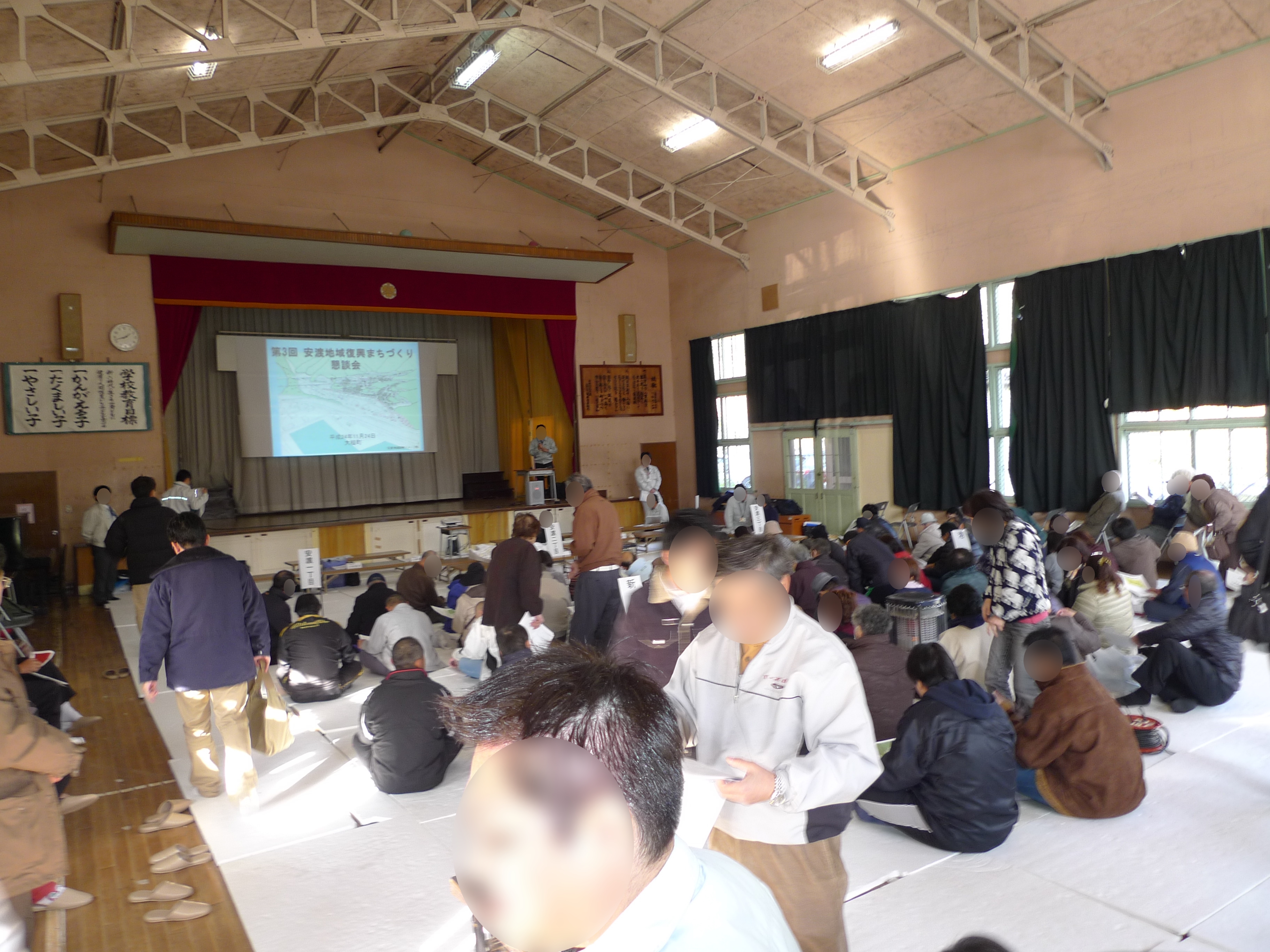 安渡小学校体育館で開催された第3回安渡地域復興まちづくり懇談会の様子