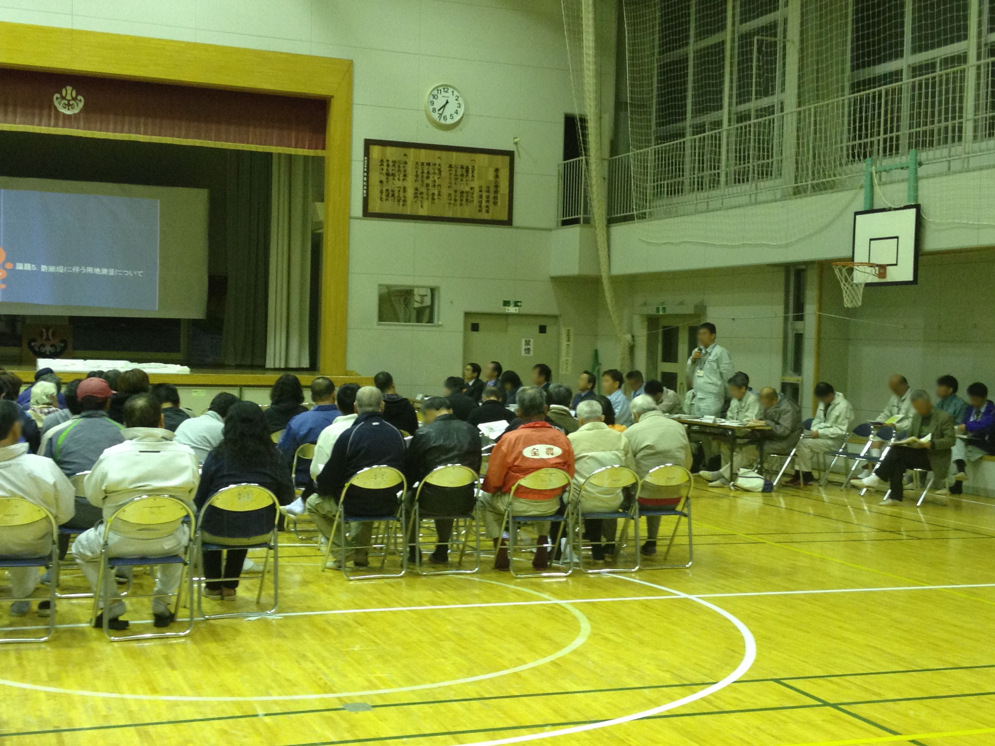 赤浜小学校体育館で開催された第3回赤浜地域復興まちづくり懇談会の様子