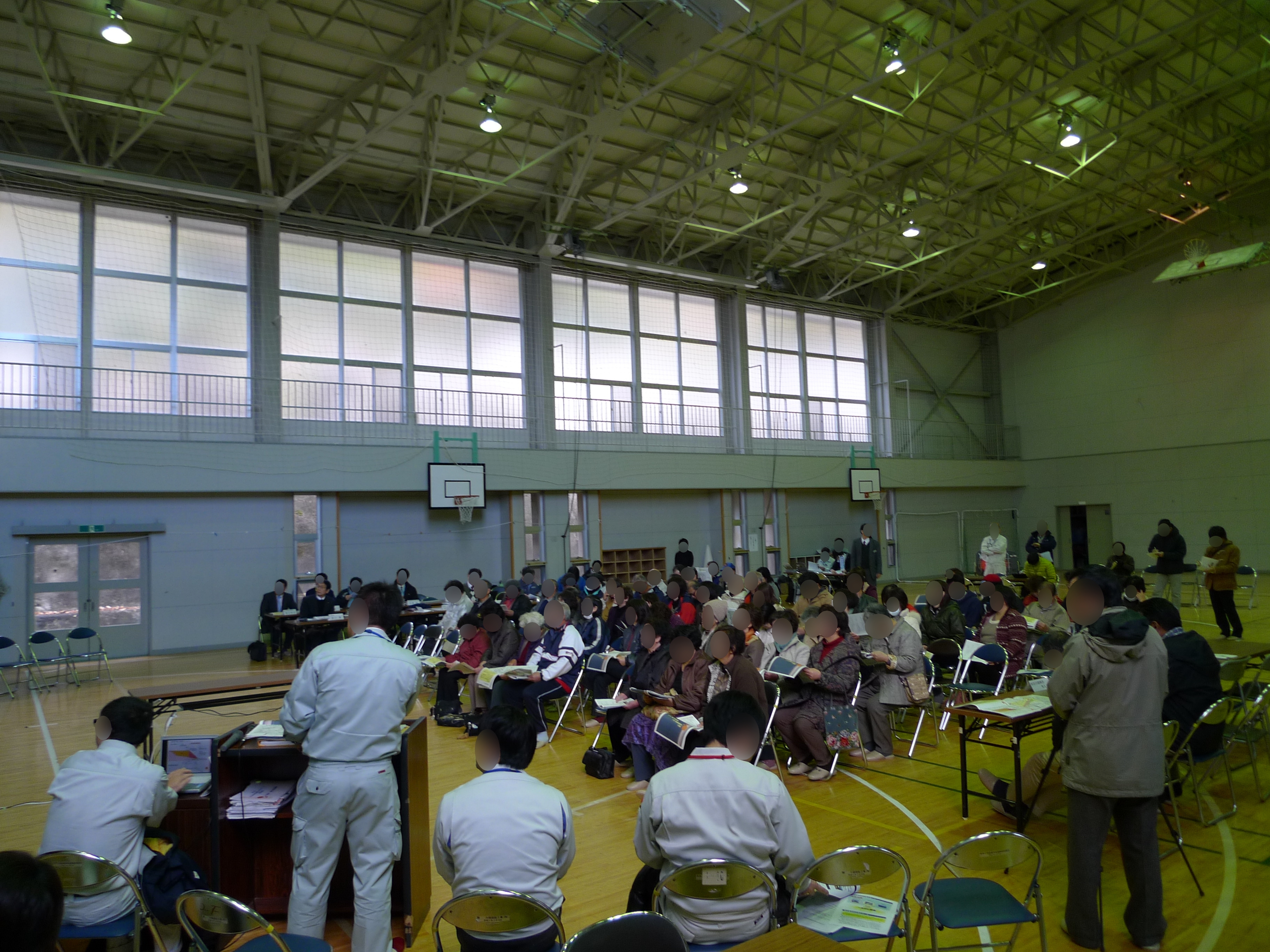 赤浜小学校体育館で開催された第5回赤浜地域復興まちづくり懇談会の様子