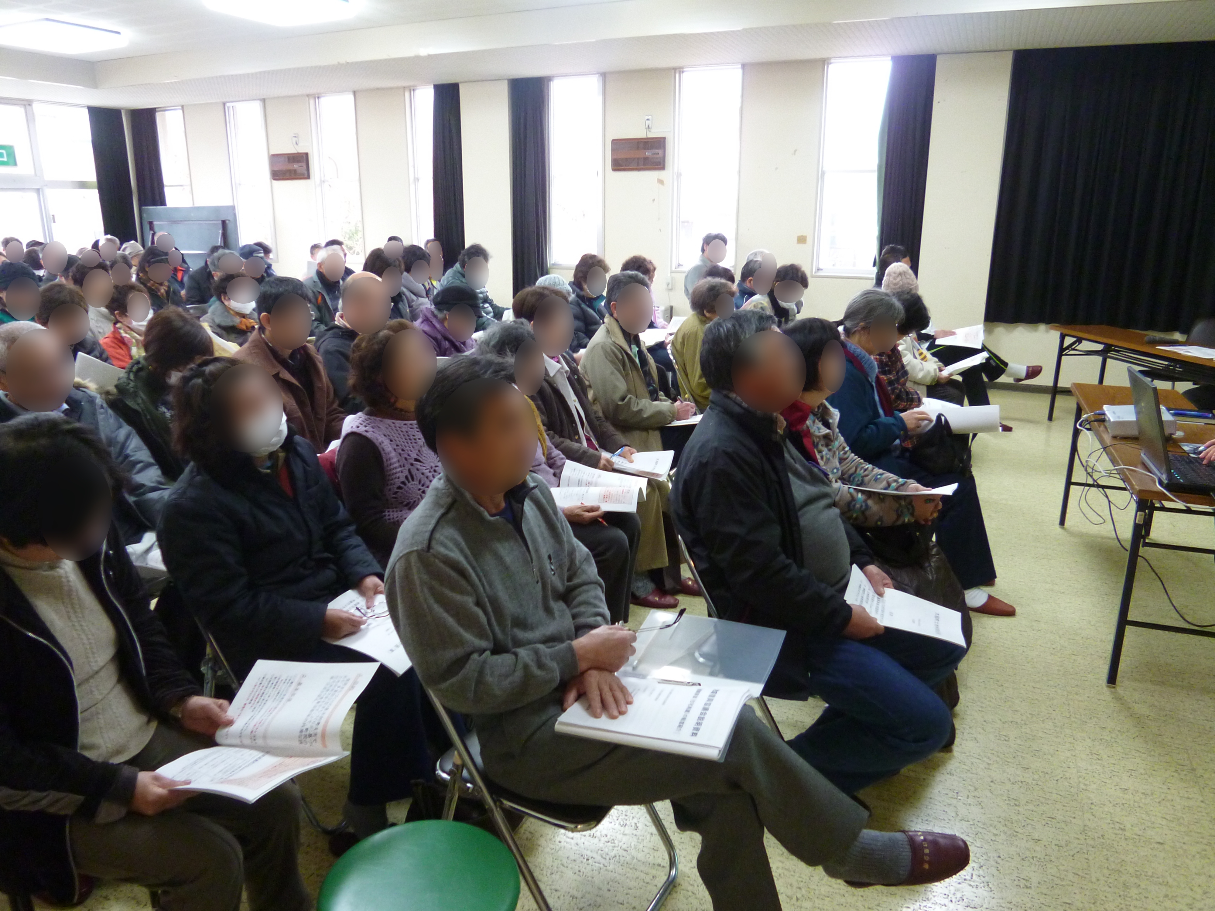大ケ口多目的集会所で開催された源水、沢山、大ケ口、迫又、柾内地区対象の住民説明会の様子