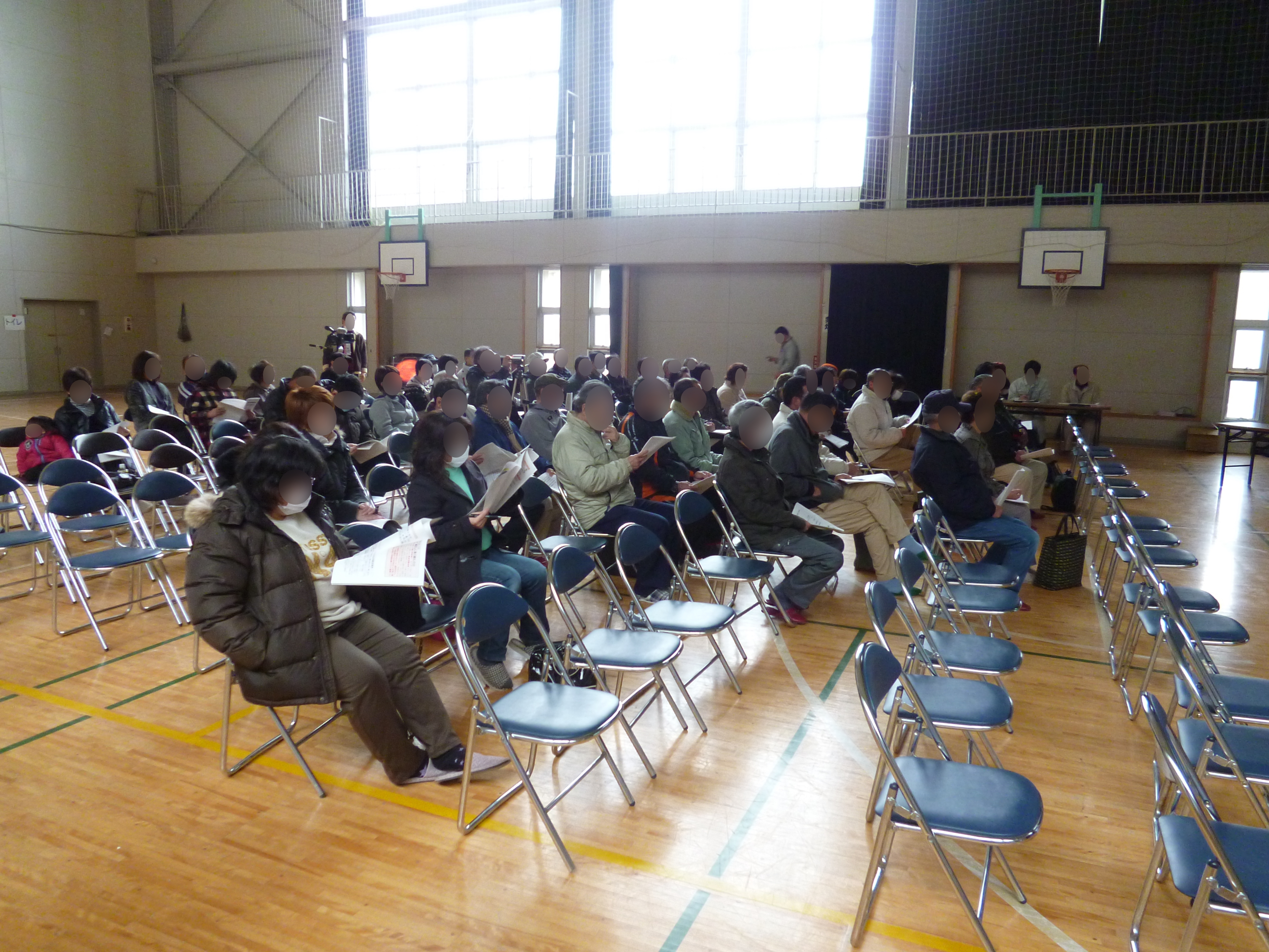 住民説明会(赤浜地区対象) 拡大表示 ダウンロード 識別子 : 4100 タイトルよみ : ジュウミンセツメイカイ(アカハマチクタイショウ) 說明・要約 : 赤浜小学校体育館で開催された赤浜地区対象の住民説明会の様子 作成者(撮影者) : 大槌町 作成者(撮影者)よみ : オオツチチョウ 提供者 : 提供者よみ : 撮影(作成)場所 : 岩手県上閉伊郡大槌町 赤浜 撮影(作成)場所よみ : イワテケンカミヘイグンオオツチチョウ アカハマ 作成日・撮影日 : 2012年 3月 18日 カテゴリー : 住民説明会 地域 : 赤浜地区 備考 : 震災事象 復興まちづくり事業 > 復興基本計画の具体化(住民と町の協議) > 町内外15ヵ所で復興計画に関する住民説明会を開催