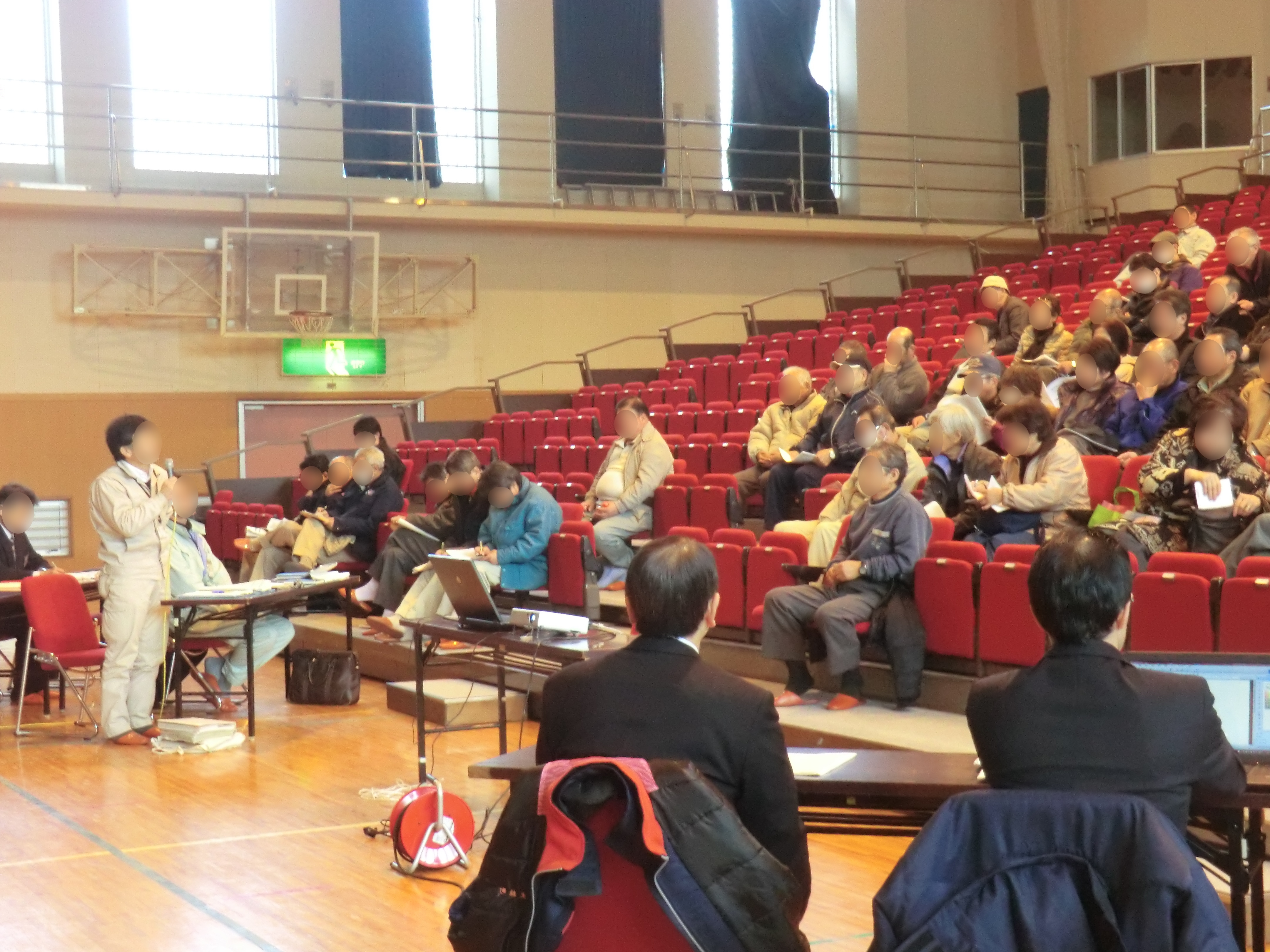 住民説明会(栄町、須賀町地区対象) 拡大表示 ダウンロード 識別子 : 4169 タイトルよみ : ジュウミンセツメイカイ(サカエチョウ、スカチョウチクタイショウ) 說明・要約 : 城山公園体育館で開催された栄町、須賀町地区対象の住民説明会の様子 作成者(撮影者) : 大槌町 作成者(撮影者)よみ : オオツチチョウ 提供者 : 提供者よみ : 撮影(作成)場所 : 岩手県上閉伊郡大槌町 城山 撮影(作成)場所よみ : イワテケンカミヘイグンオオツチチョウ シロヤマ 作成日・撮影日 : 2012年 3月 20日 カテゴリー : 住民説明会 地域 : 町方地区 備考 : 震災事象 復興まちづくり事業 > 復興基本計画の具体化(住民と町の協議) > 町内外15ヵ所で復興計画に関する住民説明会を開催