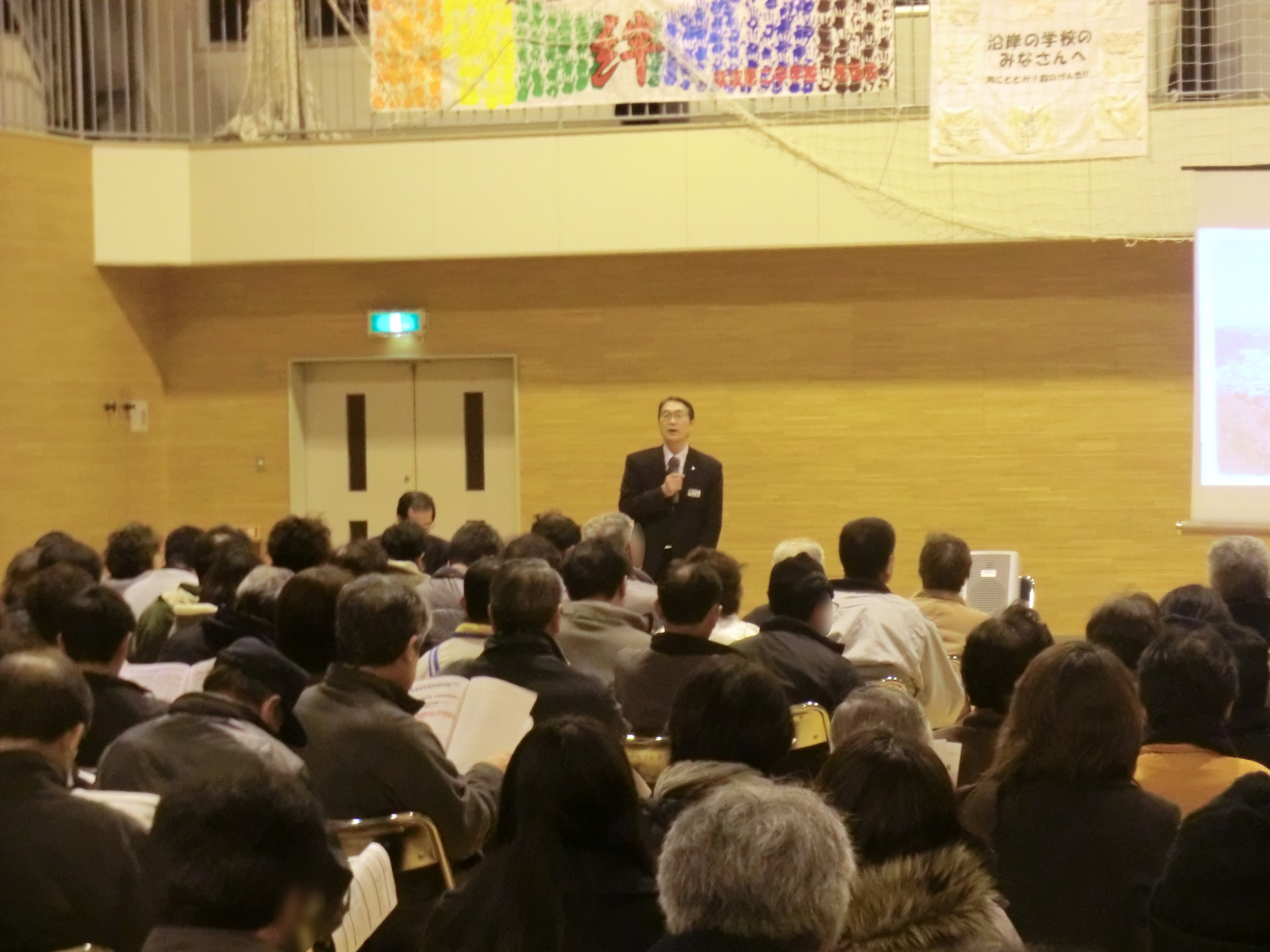 住民説明会(吉里吉里地区対象) 拡大表示 ダウンロード 識別子 : 4183 タイトルよみ : ジュウミンセツメイカイ(キリキリチクタイショウ) 說明・要約 : 吉里吉里中学校体育館で開催された吉里吉里地区対象の住民説明会の様子 作成者(撮影者) : 大槌町 作成者(撮影者)よみ : オオツチチョウ 提供者 : 提供者よみ : 撮影(作成)場所 : 岩手県上閉伊郡大槌町 吉里吉里 撮影(作成)場所よみ : イワテケンカミヘイグンオオツチチョウ キリキリ 作成日・撮影日 : 2012年 3月 18日 カテゴリー : 復旧・復興 住民説明会 地域 : 吉里吉里地区 備考 : 震災事象 復興まちづくり事業 > 復興基本計画の具体化(住民と町の協議) > 町内外15ヵ所で復興計画に関する住民説明会を開催