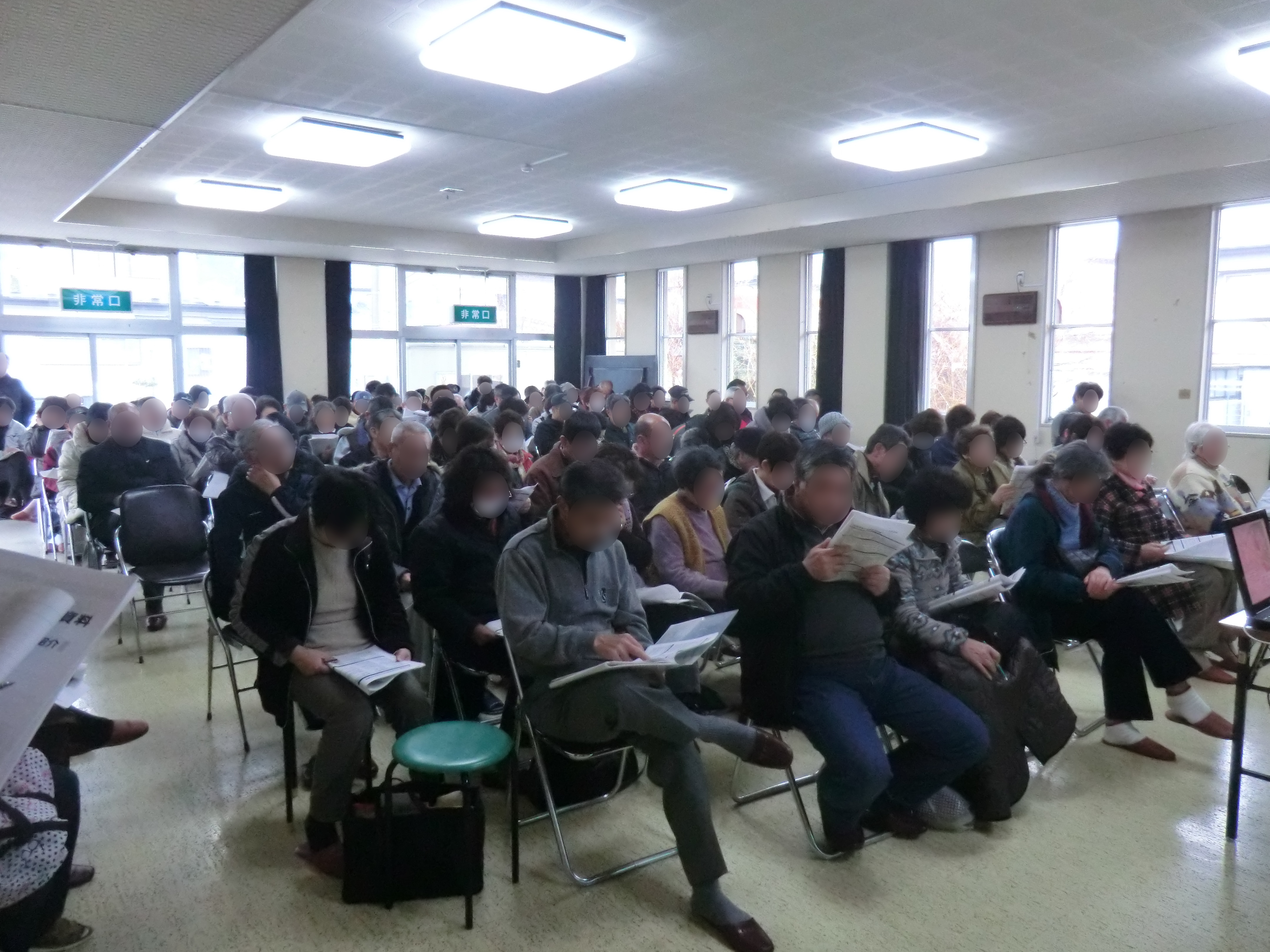 大ケ口多目的集会所で開催された源水、沢山、大ケ口、迫又、柾内地区対象の住民説明会の様子