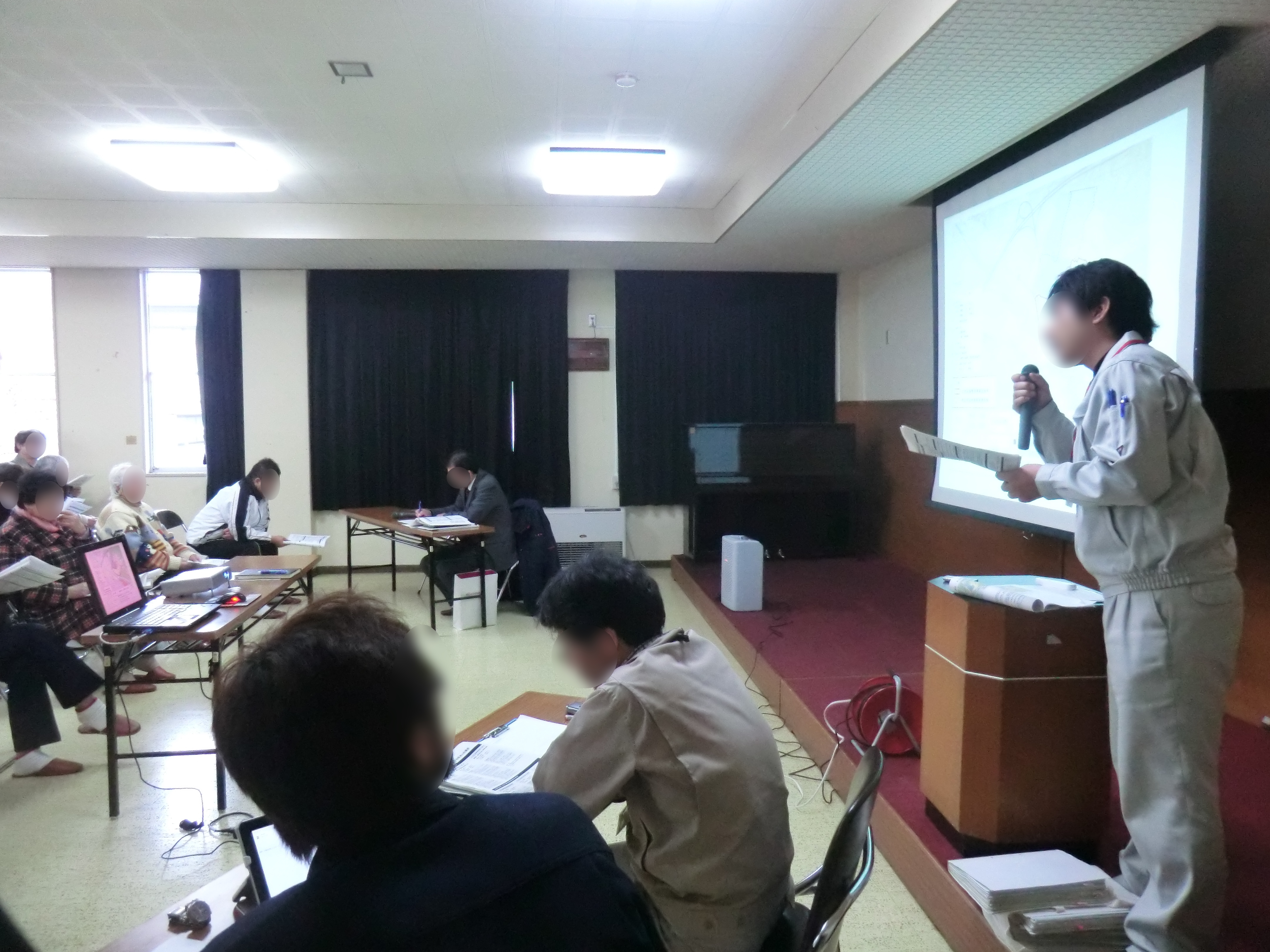 大ケ口多目的集会所で開催された源水、沢山、大ケ口、迫又、柾内地区対象の住民説明会の様子