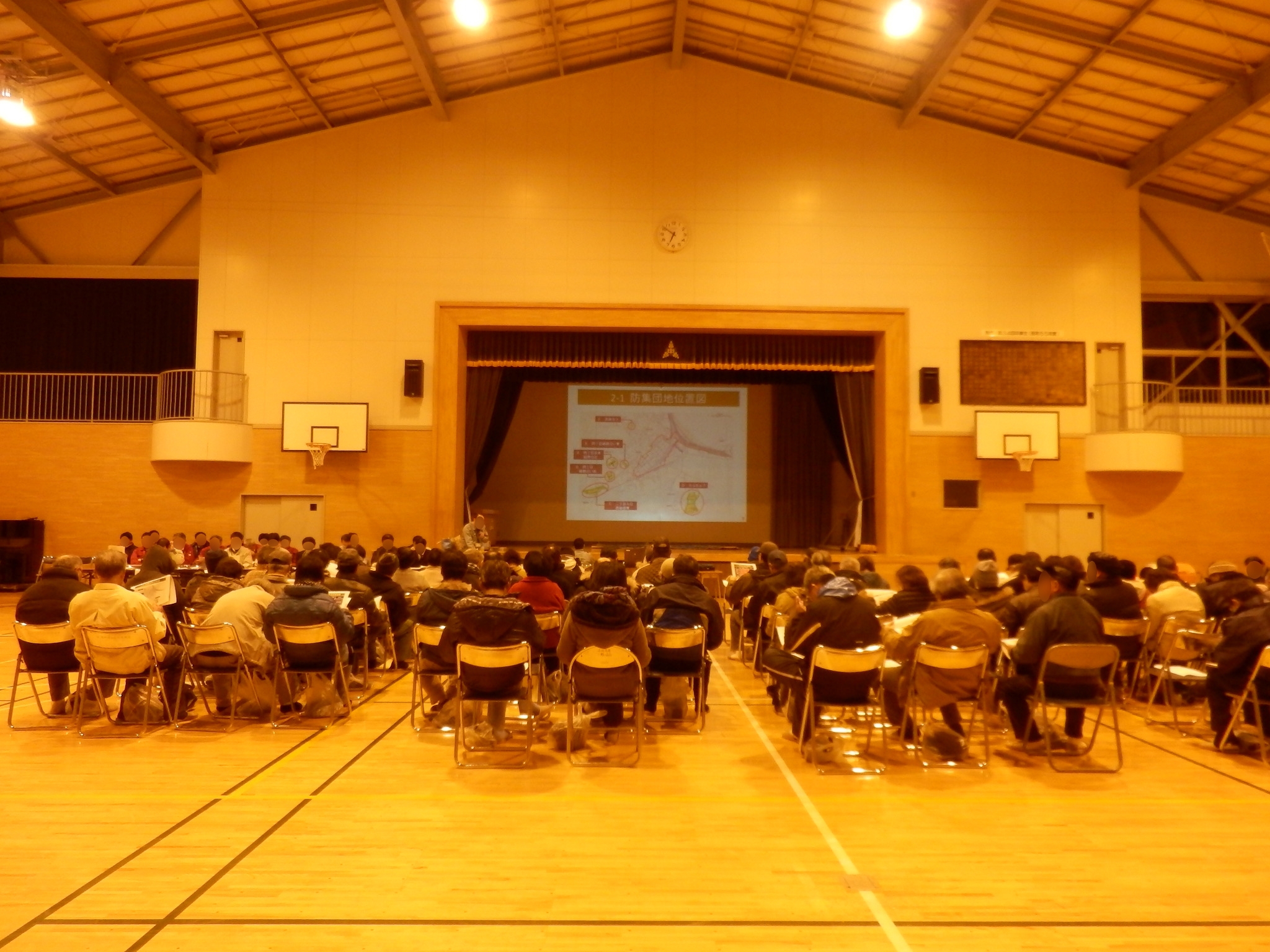 吉里吉里中学校体育館で開催された第4回吉里吉里地域復興まちづくり懇談会の様子