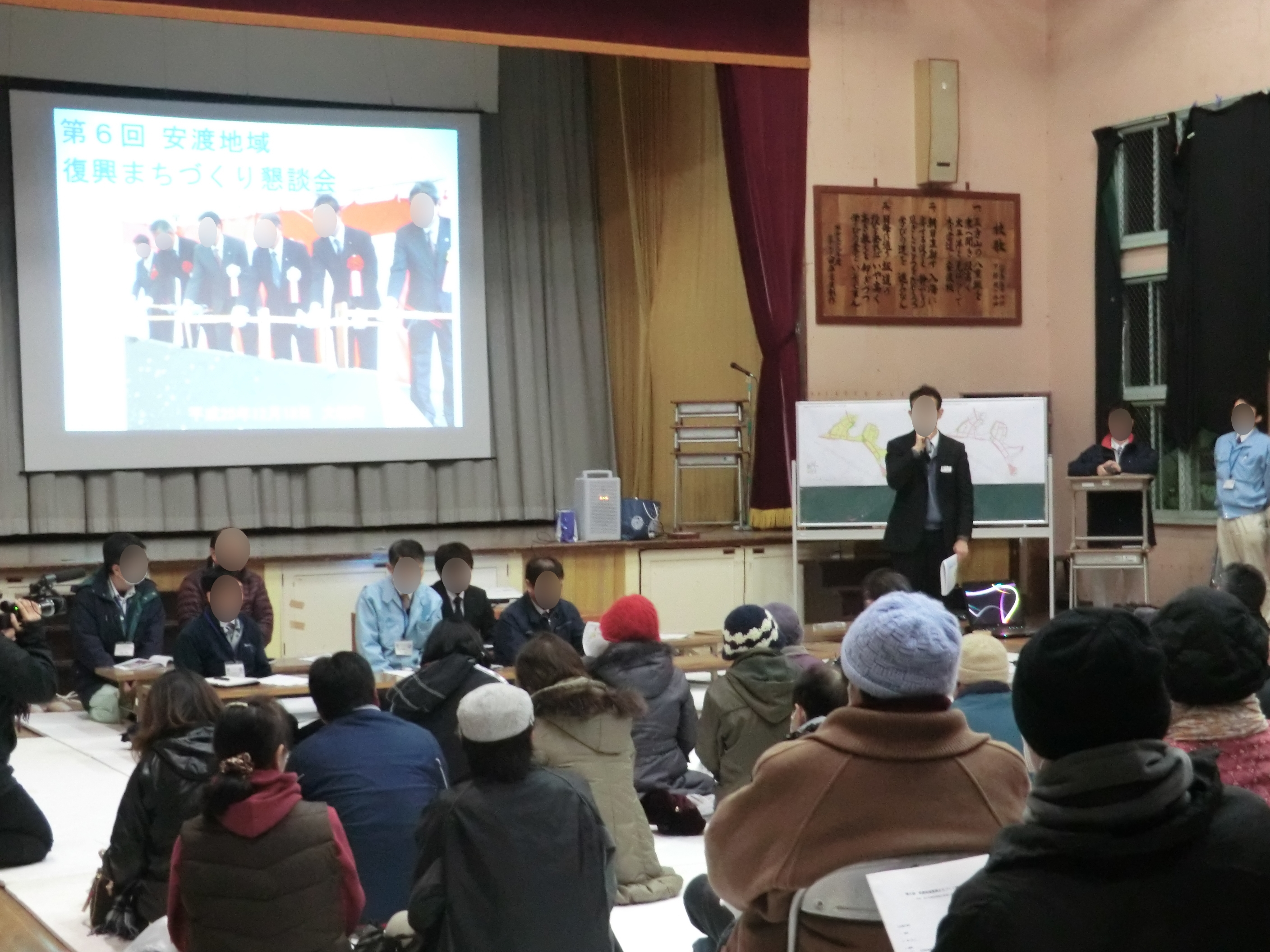旧安渡小学校体育館で開催された第6回安渡地域復興まちづくり懇談会の様子