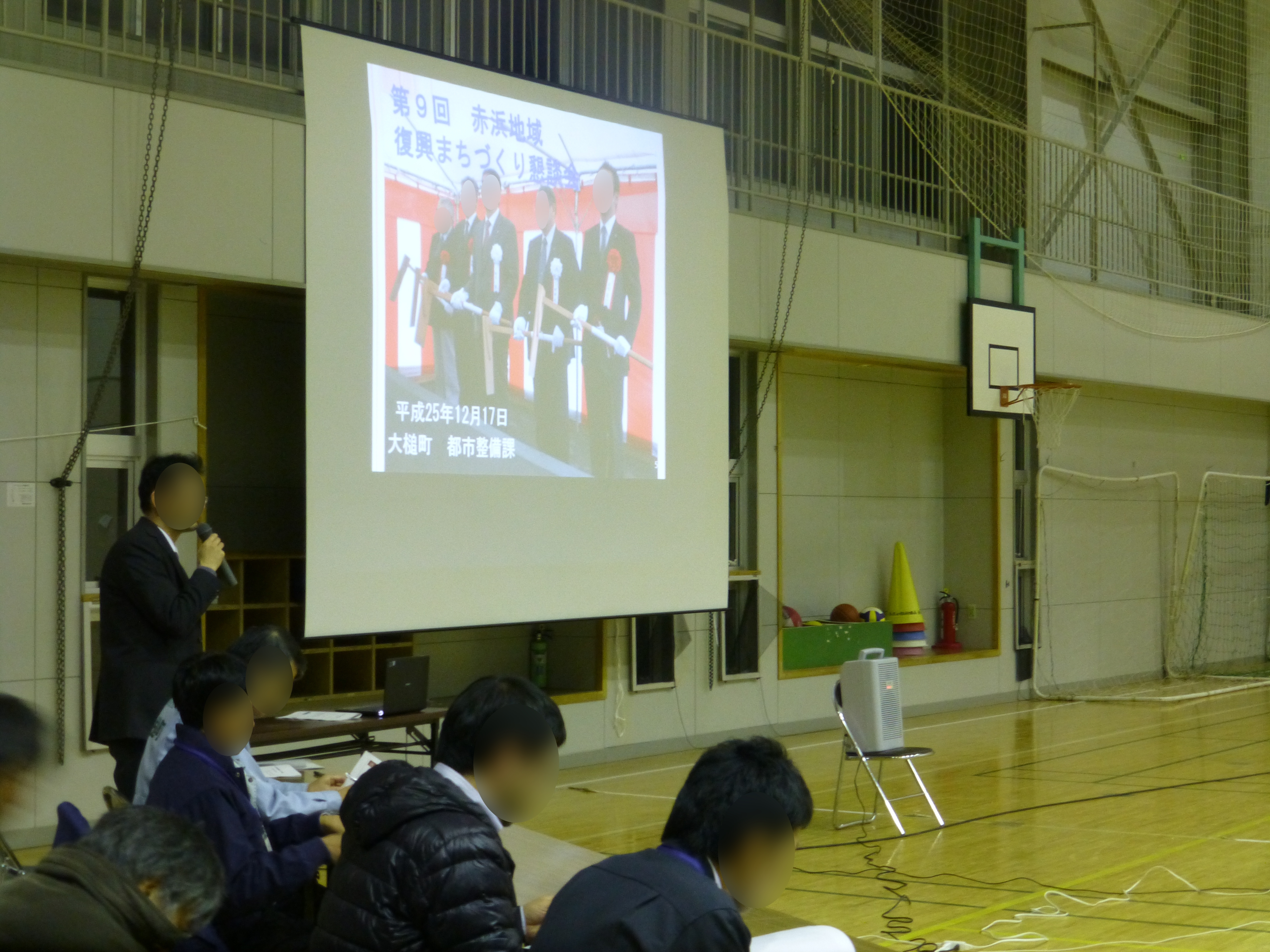 旧赤浜小学校体育館で開催された第9回赤浜地域復興まちづくり懇談会の様子
