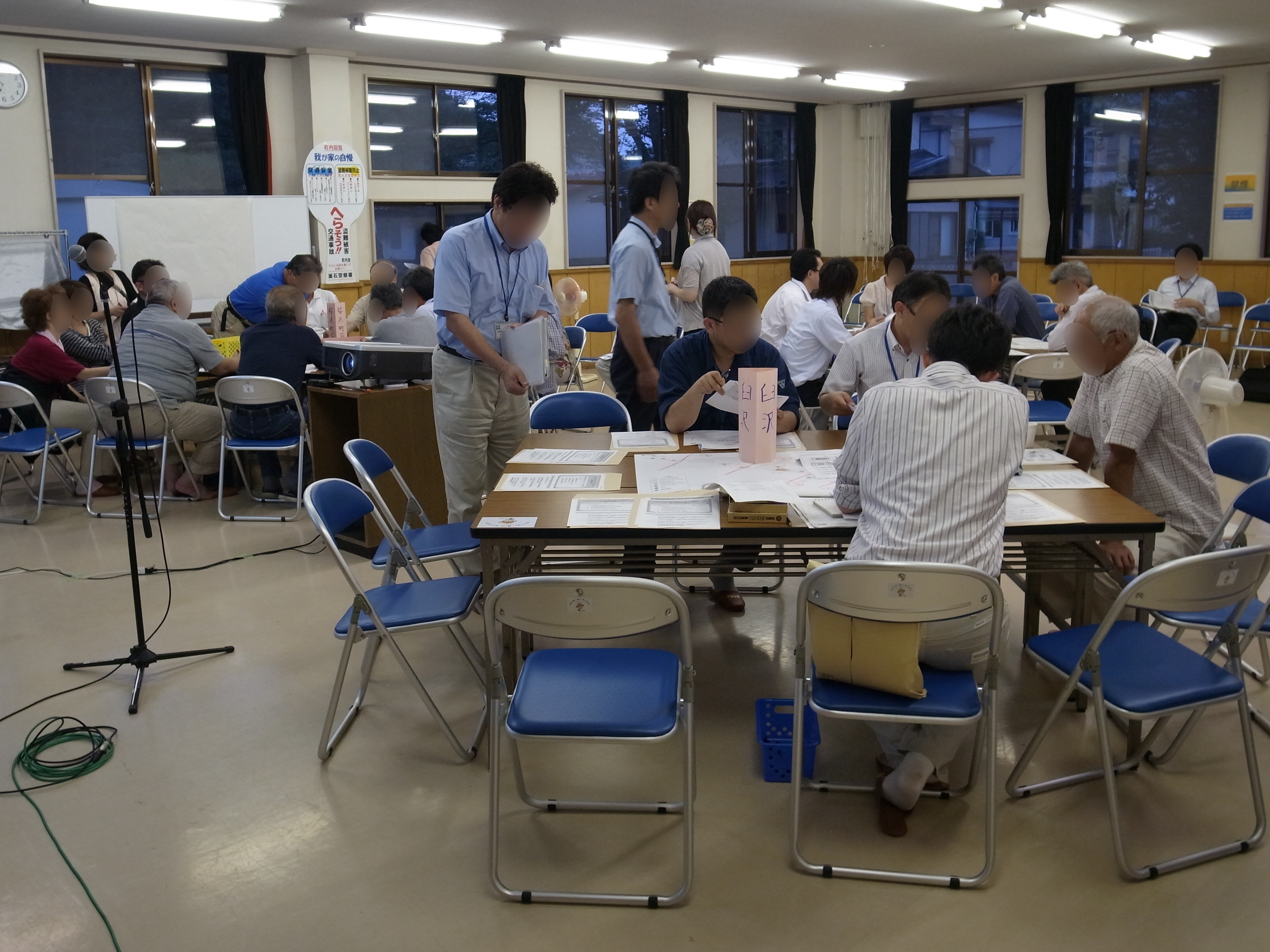 桜木町保健福祉会館で開催された平成26年度第1回桜木町・花輪田・臼沢地域復興協議会の様子