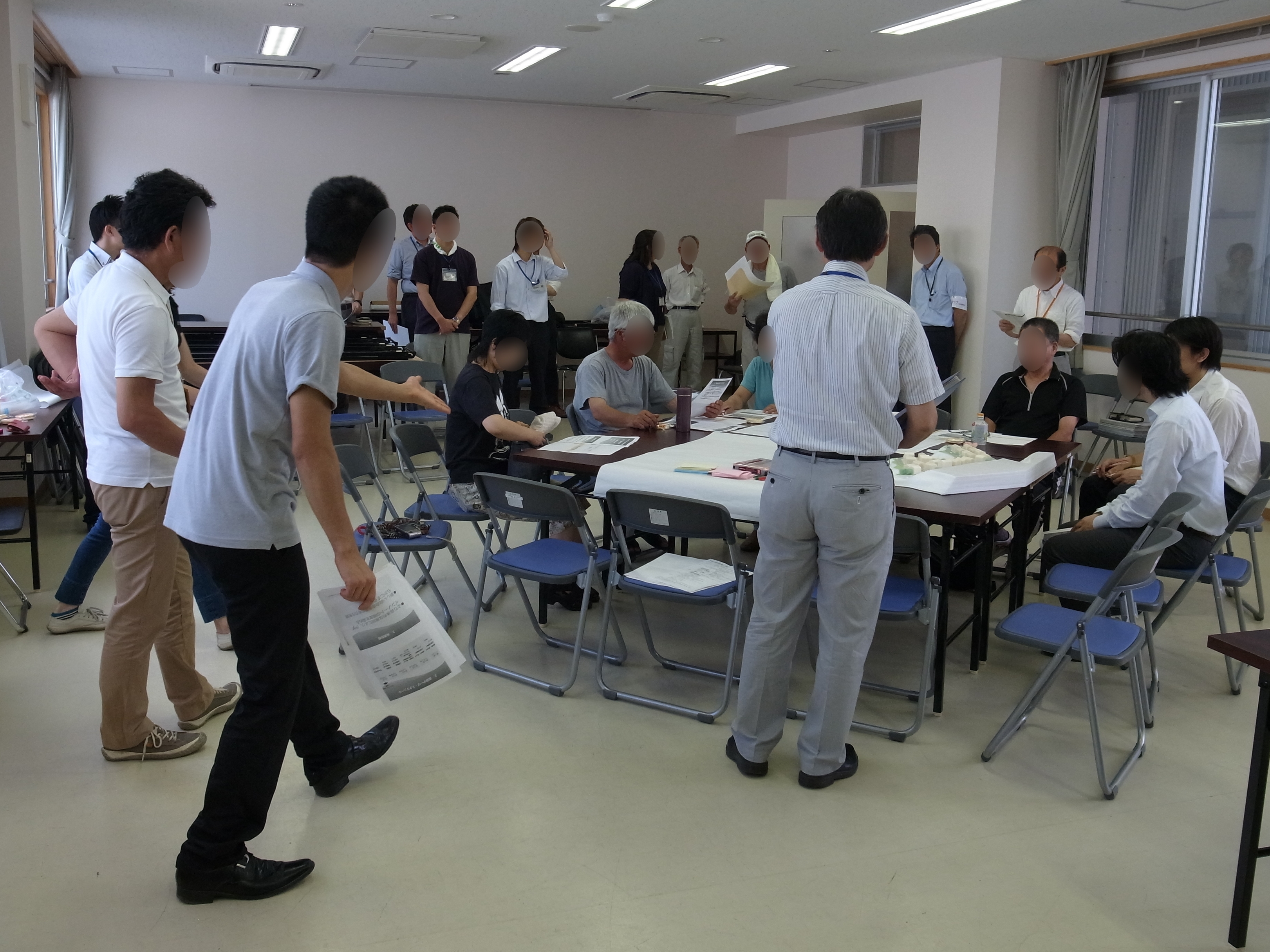 役場大会議室で開催された平成26年度第1回小枕・伸松地域復興協議会の様子