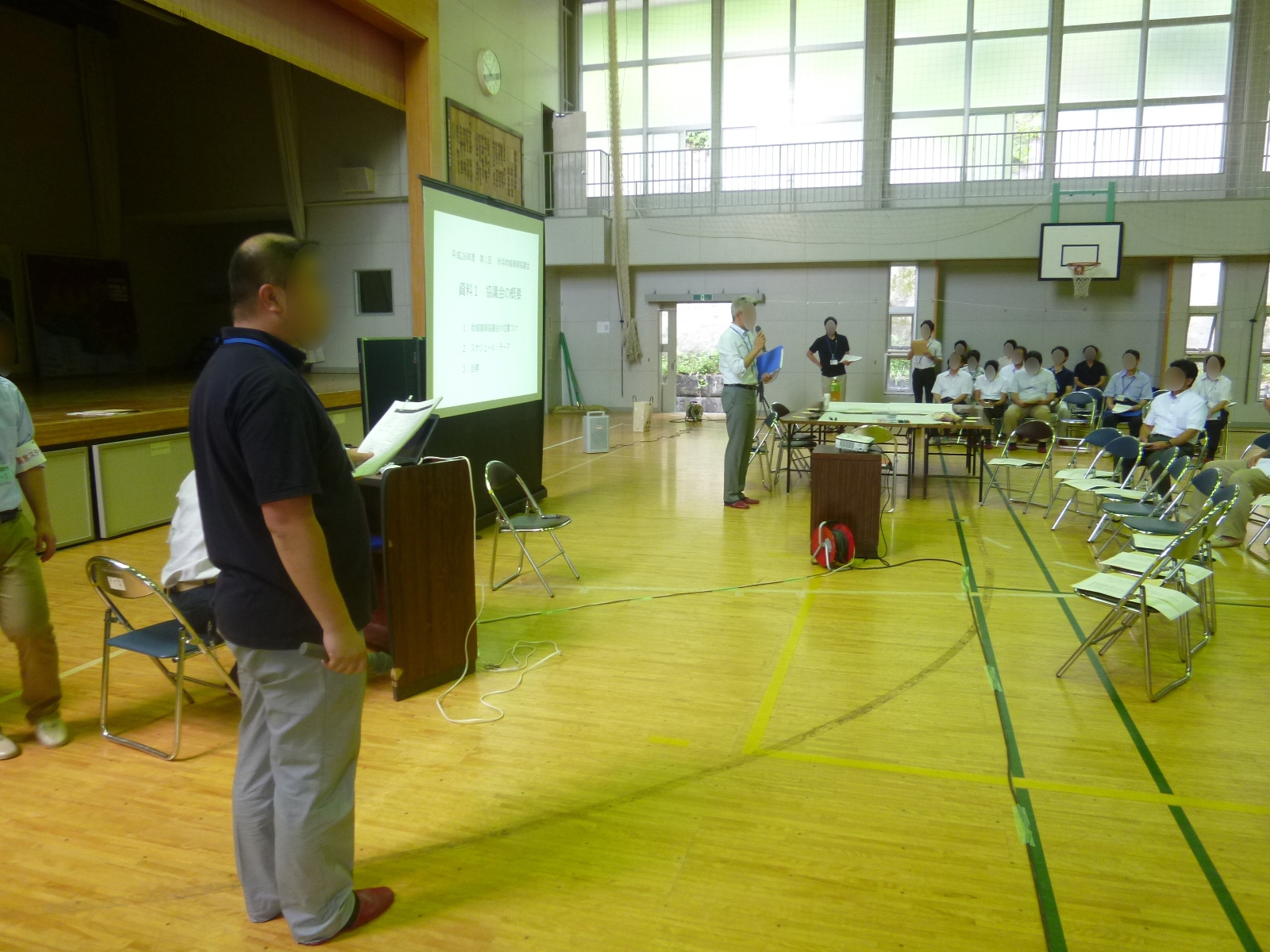 旧赤浜小学校体育館で開催された平成26年度第1回小枕・伸松地域復興協議会の様子
