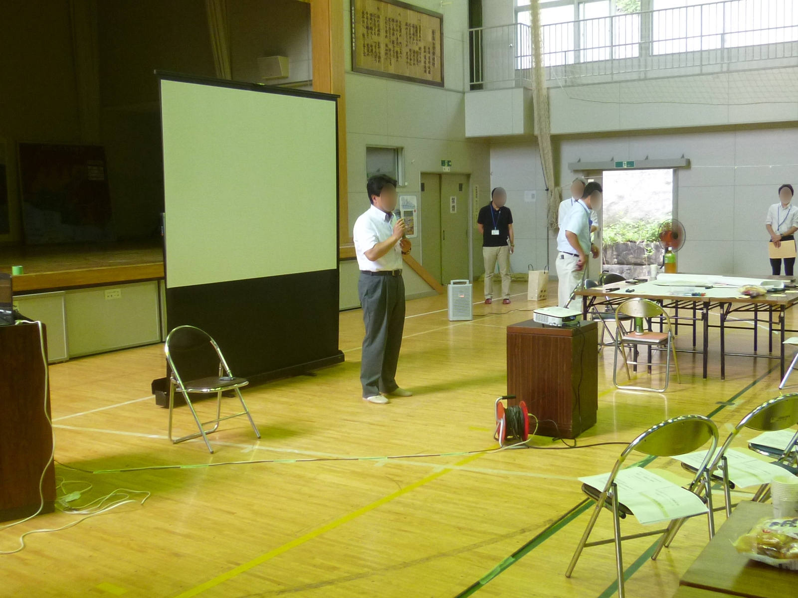旧赤浜小学校体育館で開催された平成26年度第1回小枕・伸松地域復興協議会の様子
