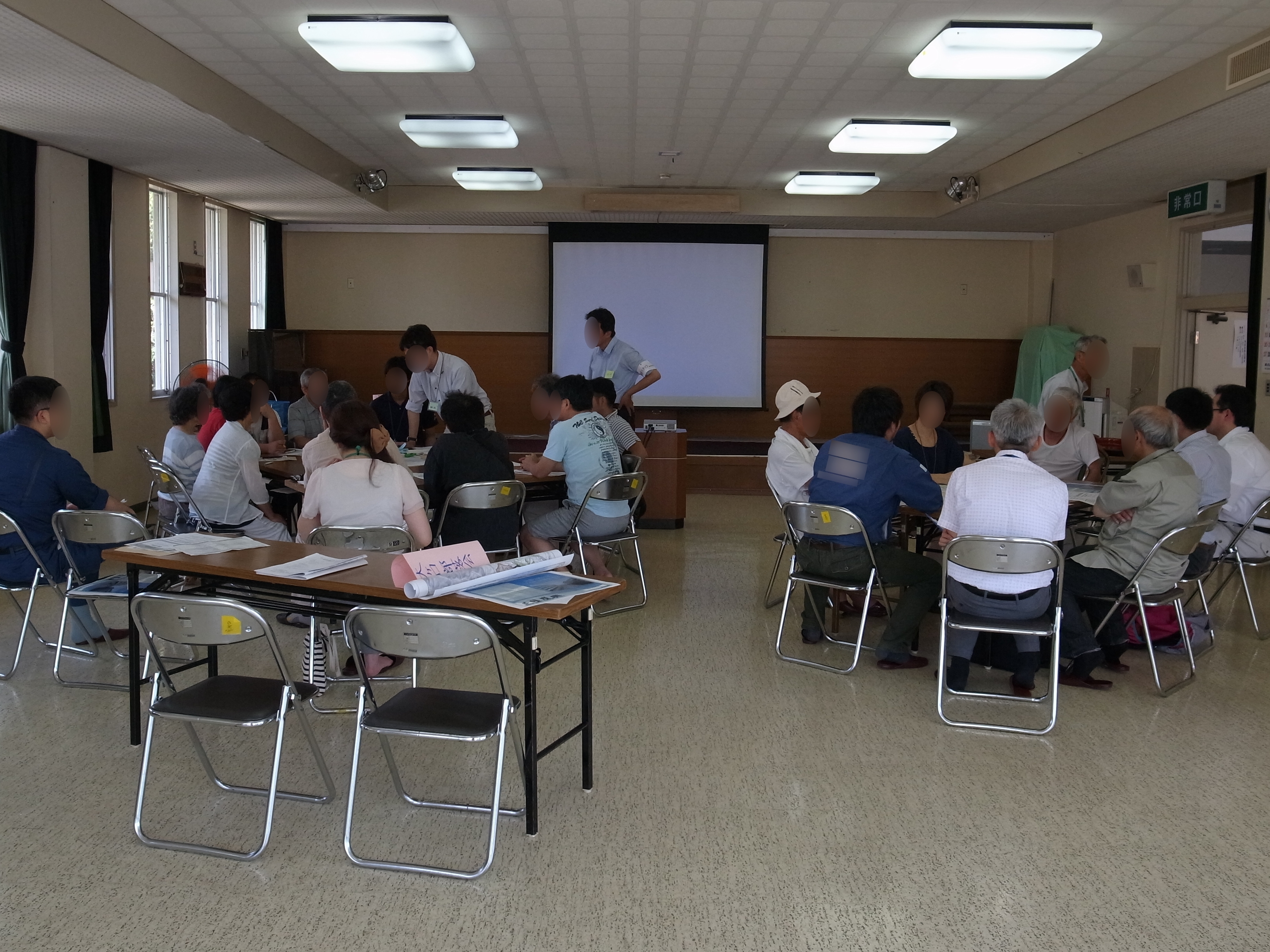 大ケ口多目的集会所で開催された平成26年度第1回沢山・大ケ口・源水(大ケ口・源水・柾内・前段・和野地区)地域復興協議会の様子
