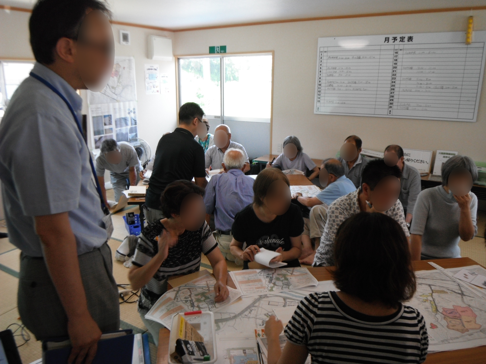 (仮称)沢山自治会館で開催された平成26年度第1回沢山・大ケ口・源水(沢山・迫又地区)地域復興協議会の様子
