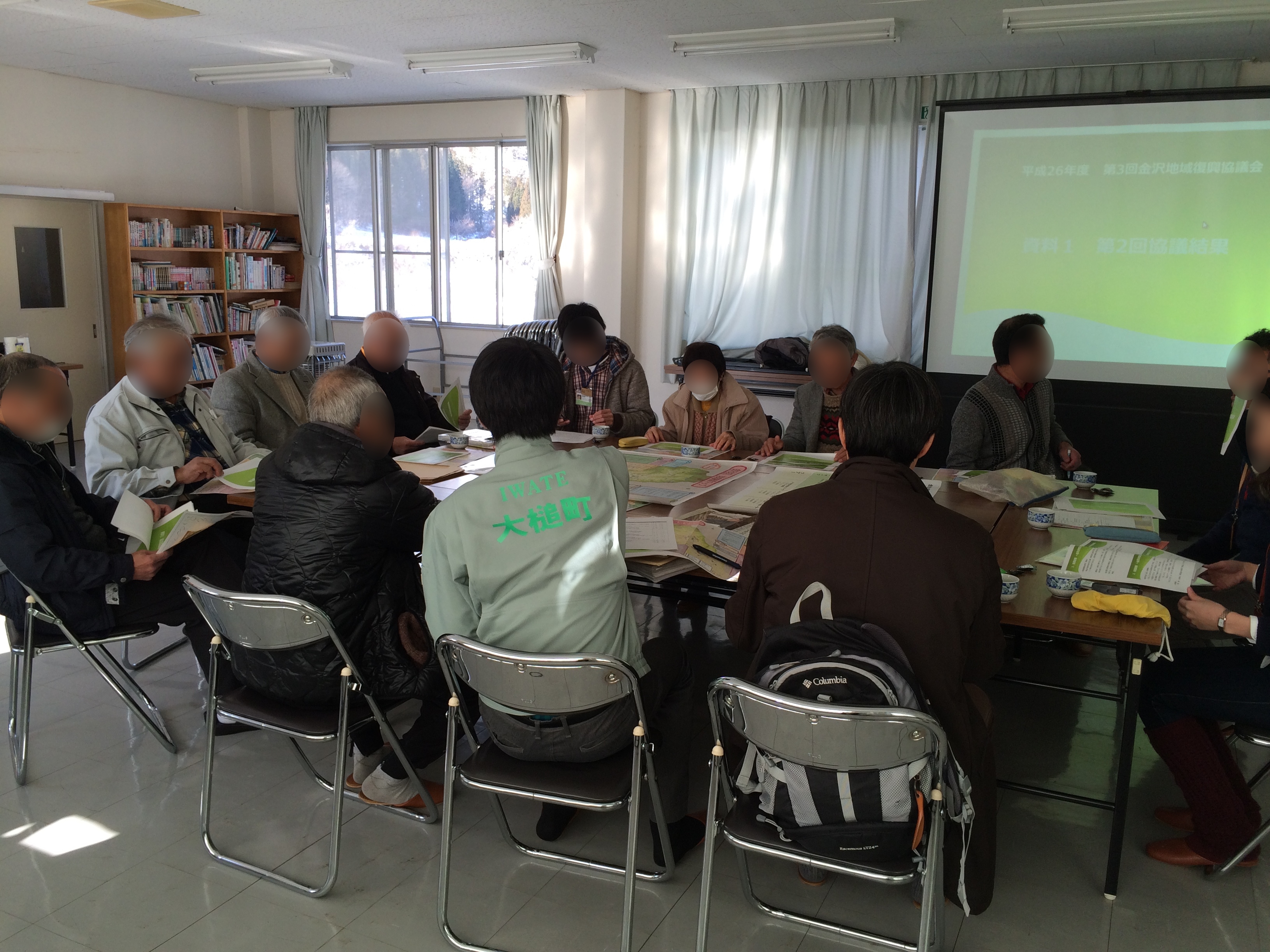 大槌町公民館金沢分館で開催された平成26年度第2回金沢地域復興協議会の様子