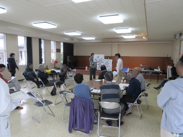 大ケ口多目的集会所で開催された平成26年度第3回沢山・大ケ口・源水(大ケ口・柾内・前段・和野地区)地域復興協議会の様子
