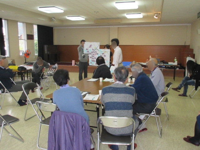 大ケ口多目的集会所で開催された平成26年度第3回沢山・大ケ口・源水(大ケ口・柾内・前段・和野地区)地域復興協議会の様子