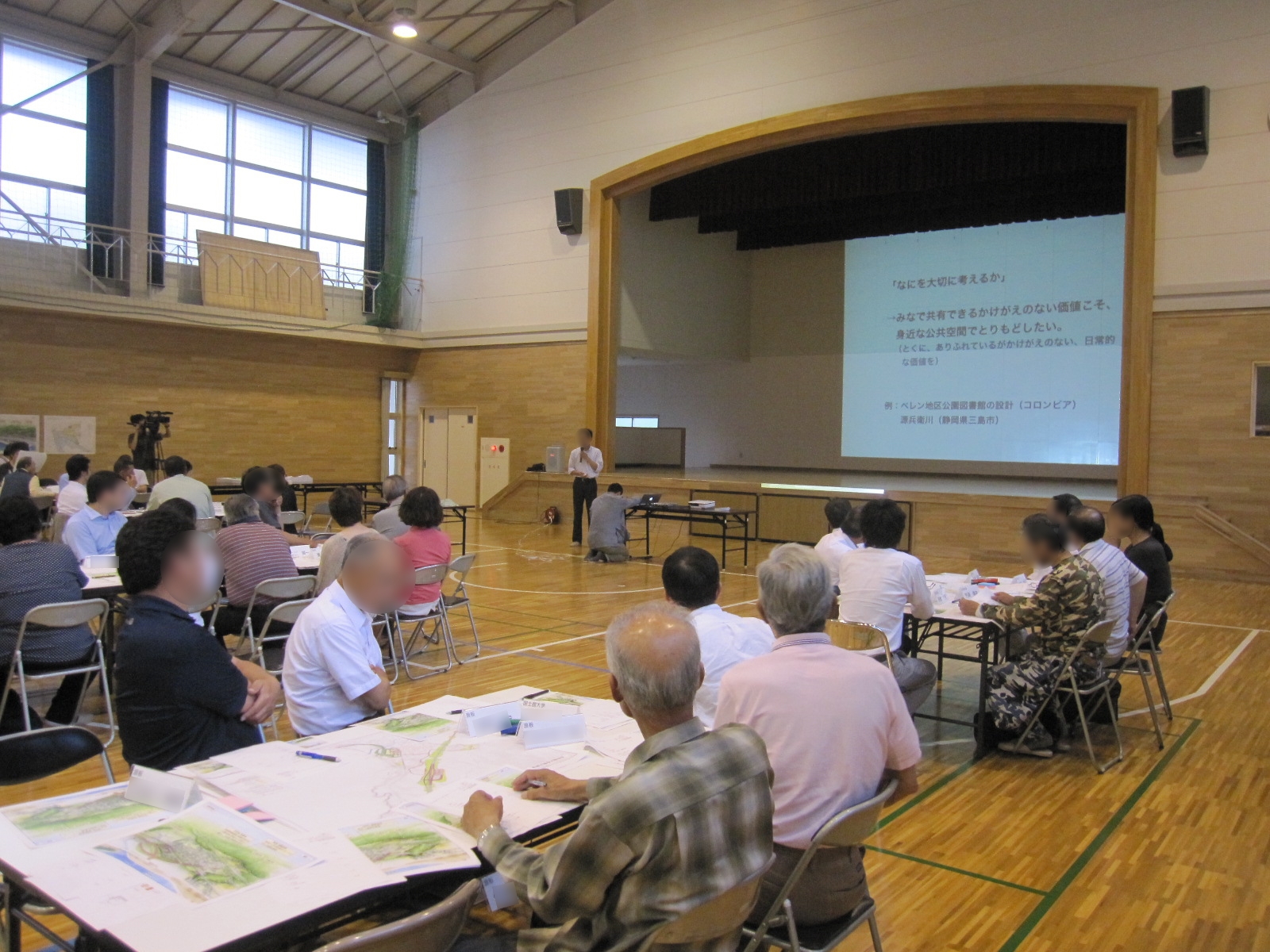 旧大槌小学校で開催された第2回大槌デザイン会議と地区別ワーキンググループの様子
