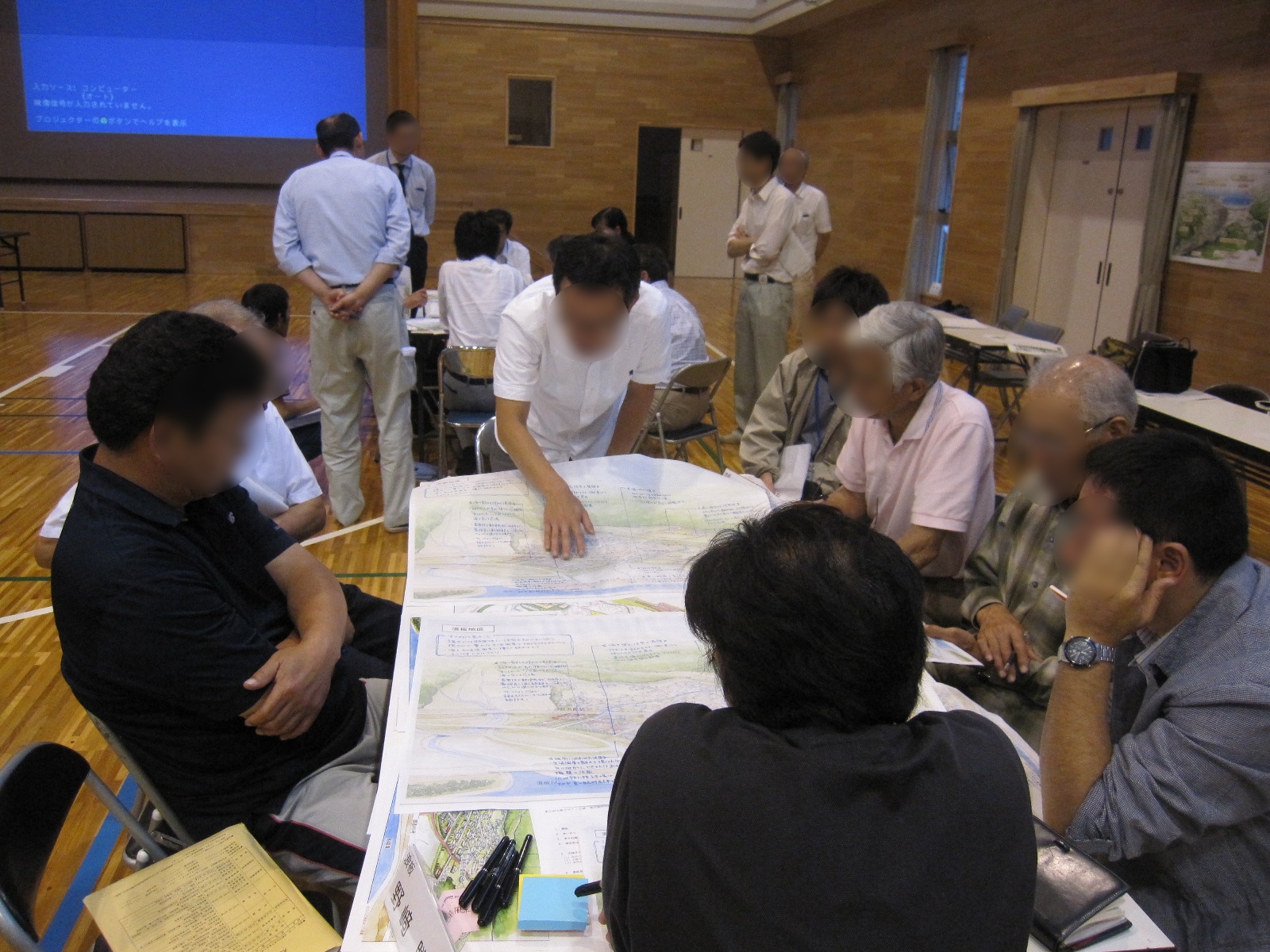 旧大槌小学校で開催された第2回大槌デザイン会議と地区別ワーキンググループの様子