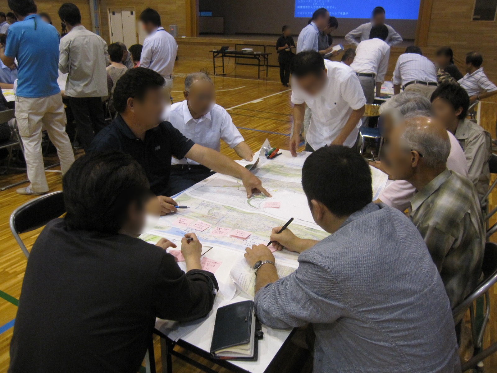 旧大槌小学校で開催された第2回大槌デザイン会議と地区別ワーキンググループの様子