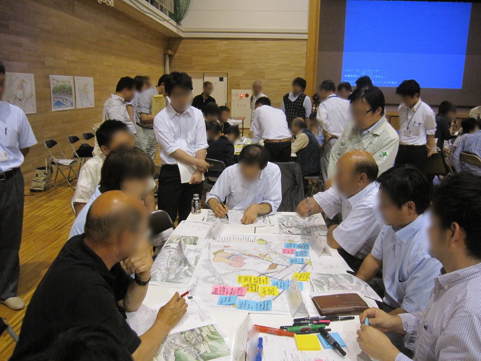 旧大槌小学校で開催された第2回大槌デザイン会議と地区別ワーキンググループの様子