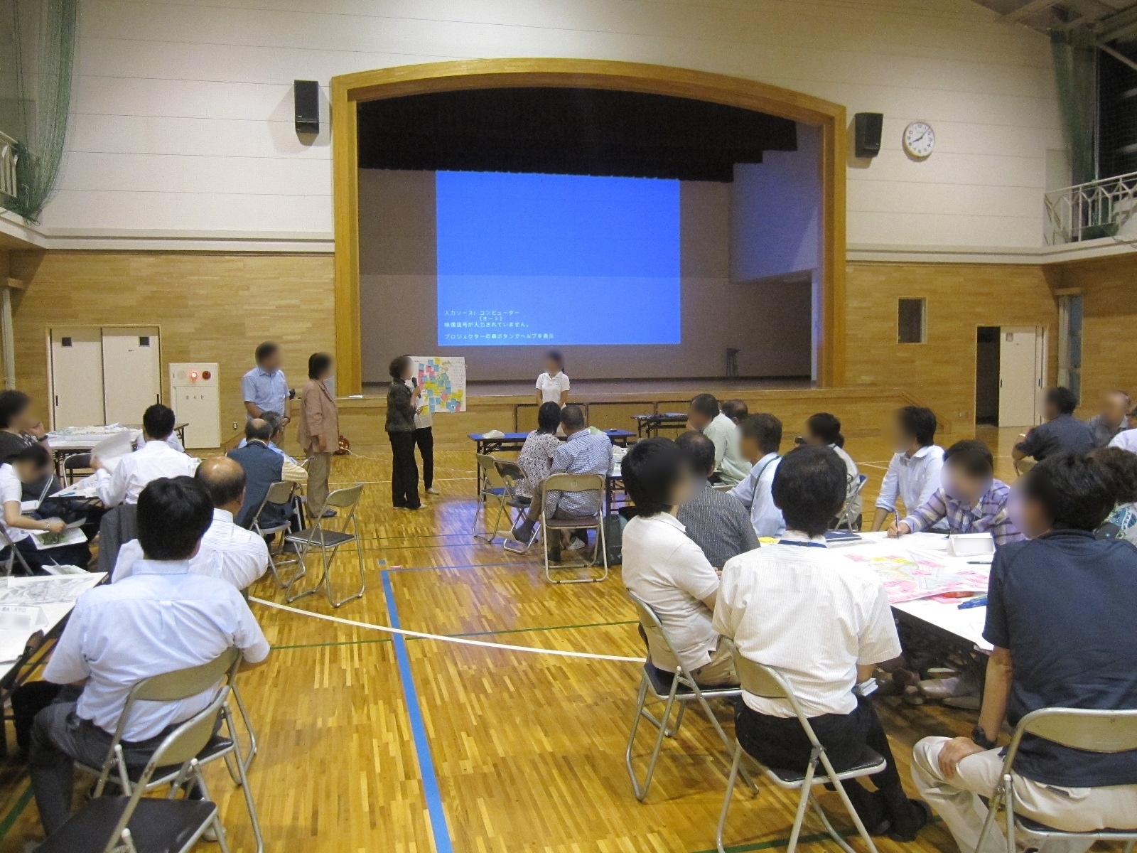 旧大槌小学校で開催された第2回大槌デザイン会議と地区別ワーキンググループの様子