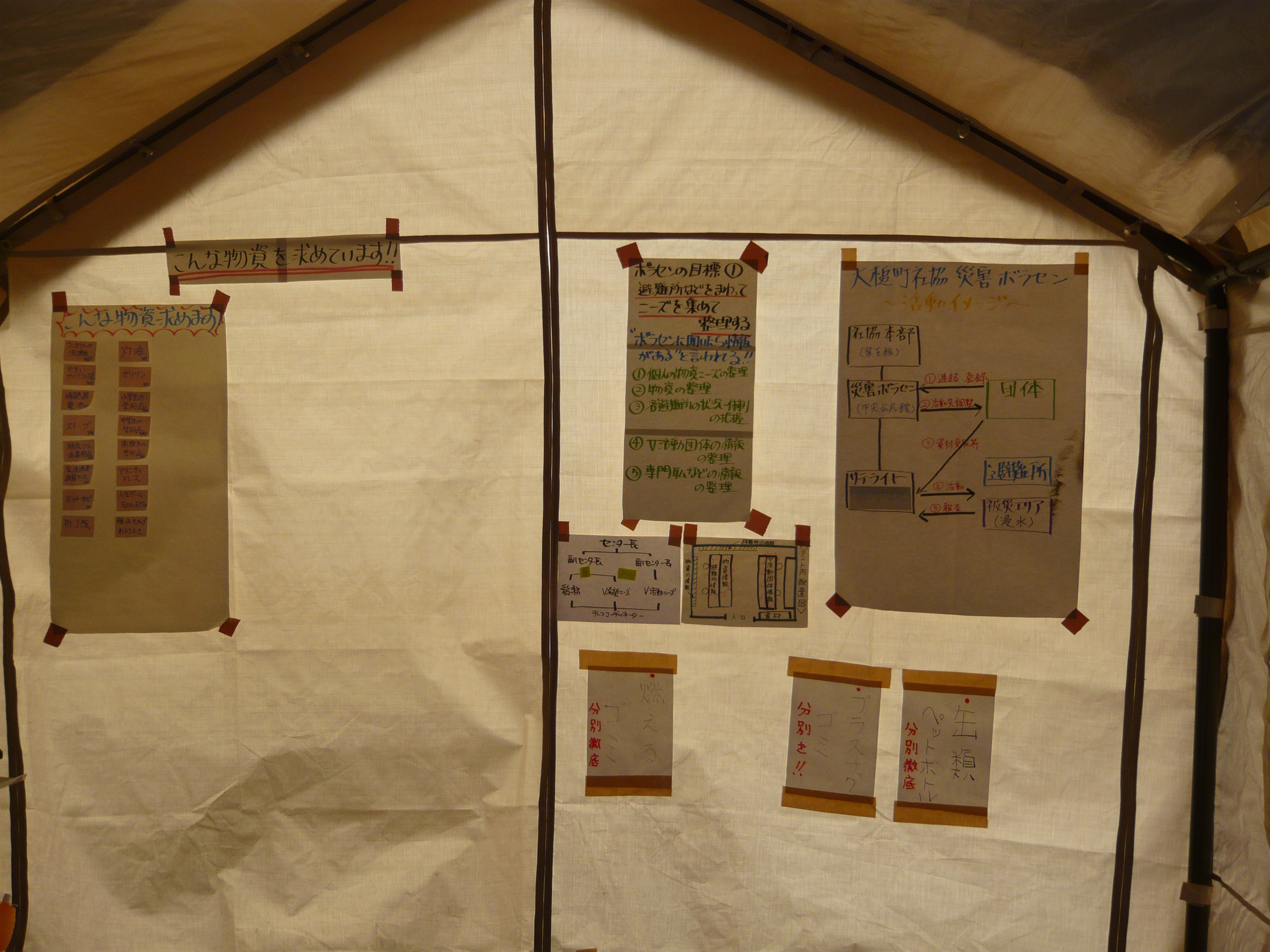 ボランティアセンター(テント内部)の様子