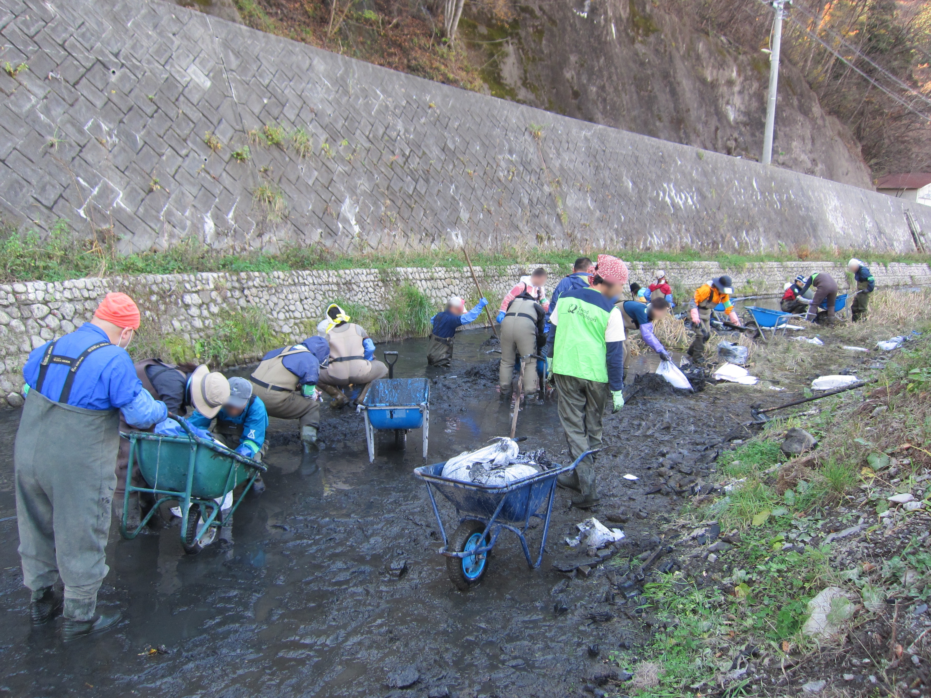 源内川でヘドロのかき出し作業をしている様子