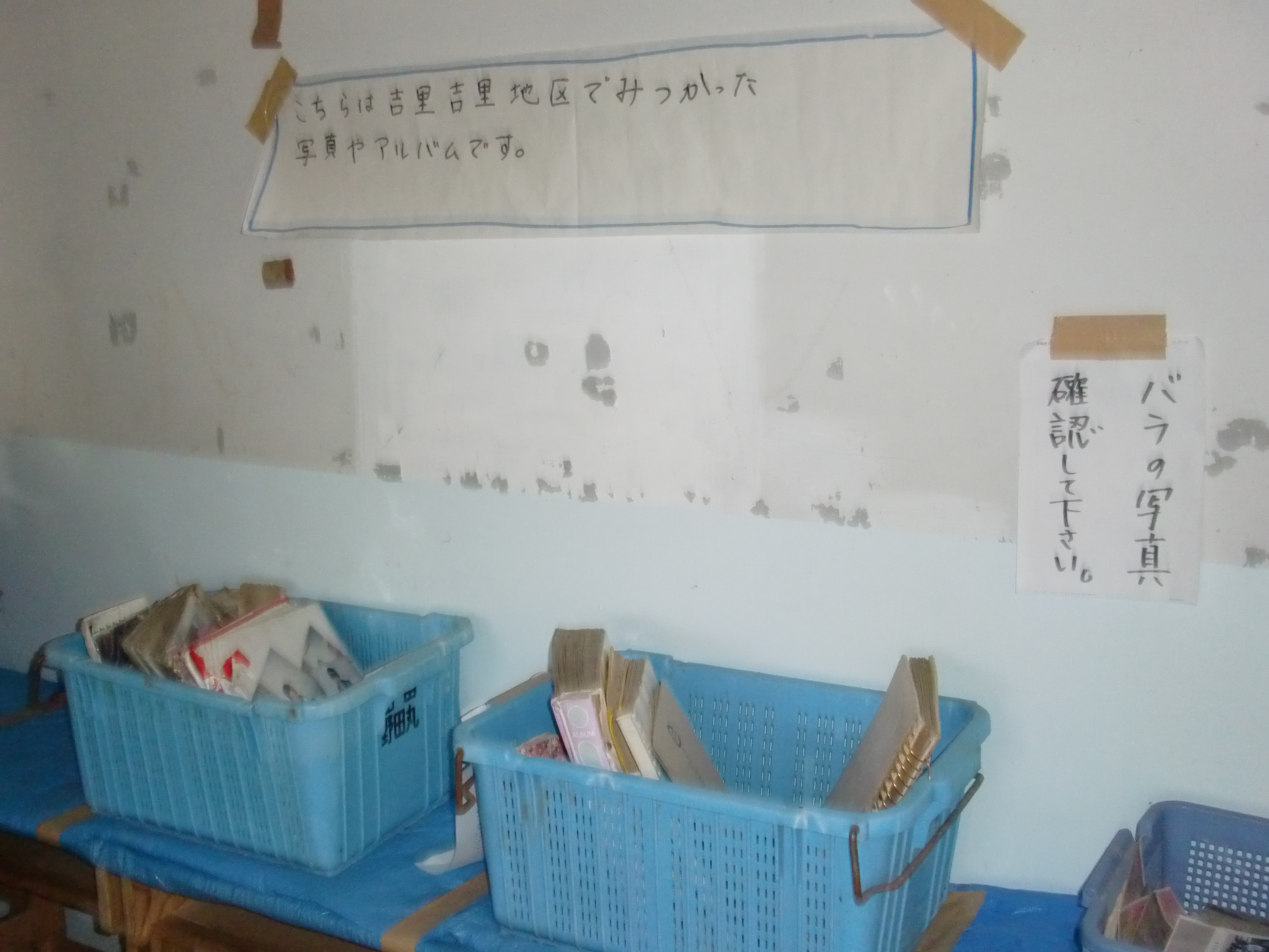 写真を分類して展示している様子
