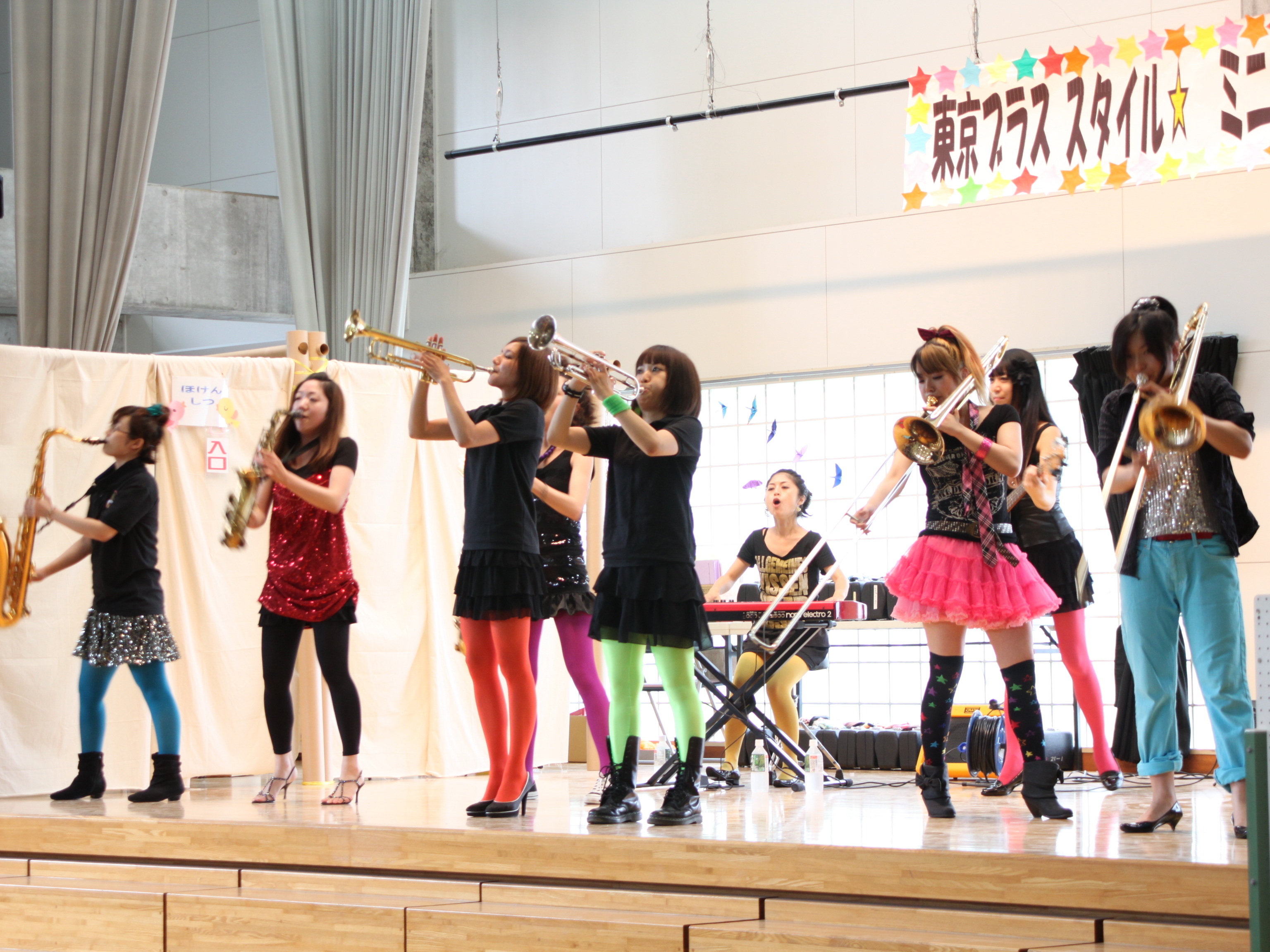 吉里吉里小学校体育館で開催された東京ブラススタイルのミニライブの様子