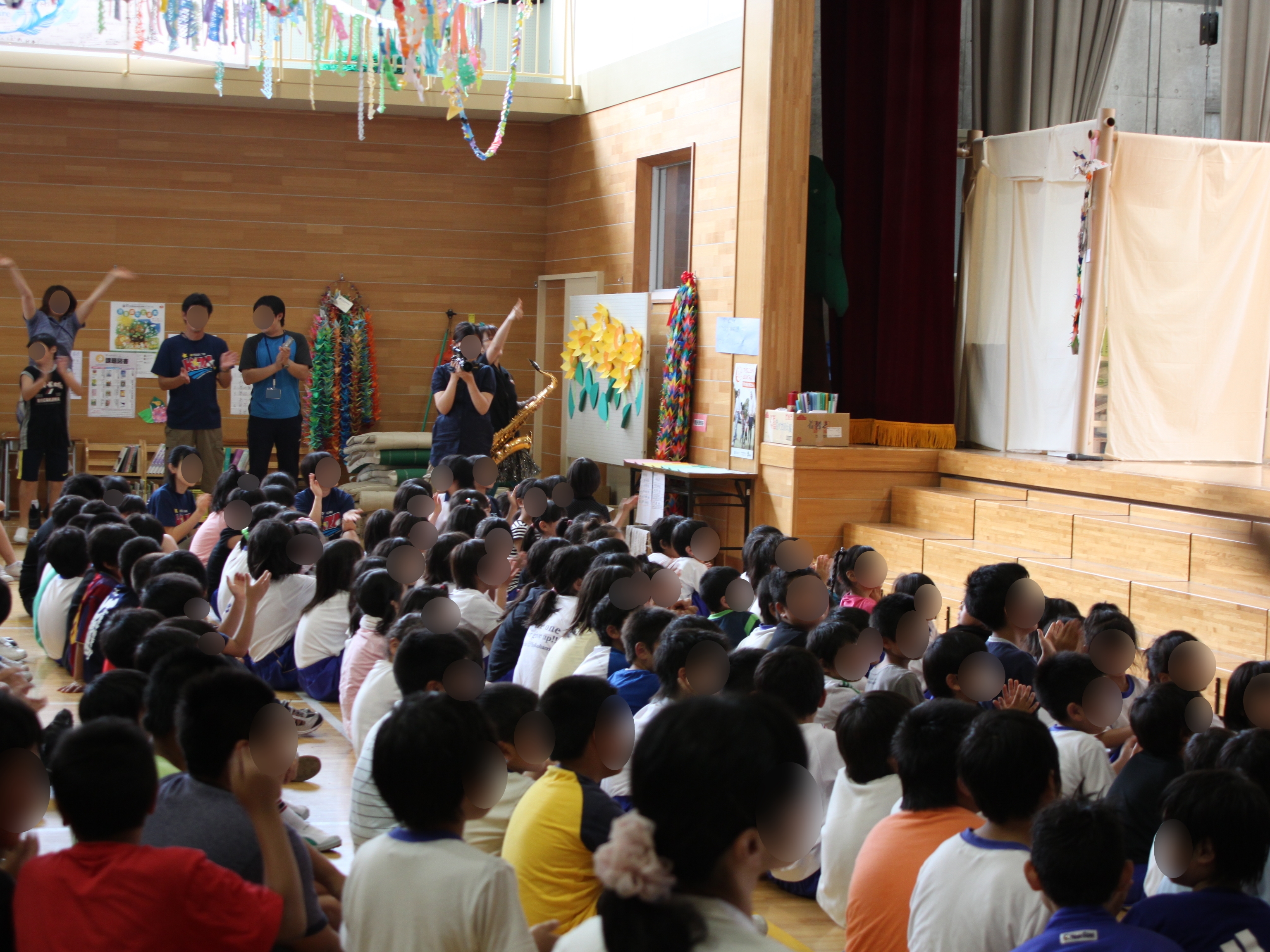 吉里吉里小学校体育館で開催された東京ブラススタイルのミニライブの様子