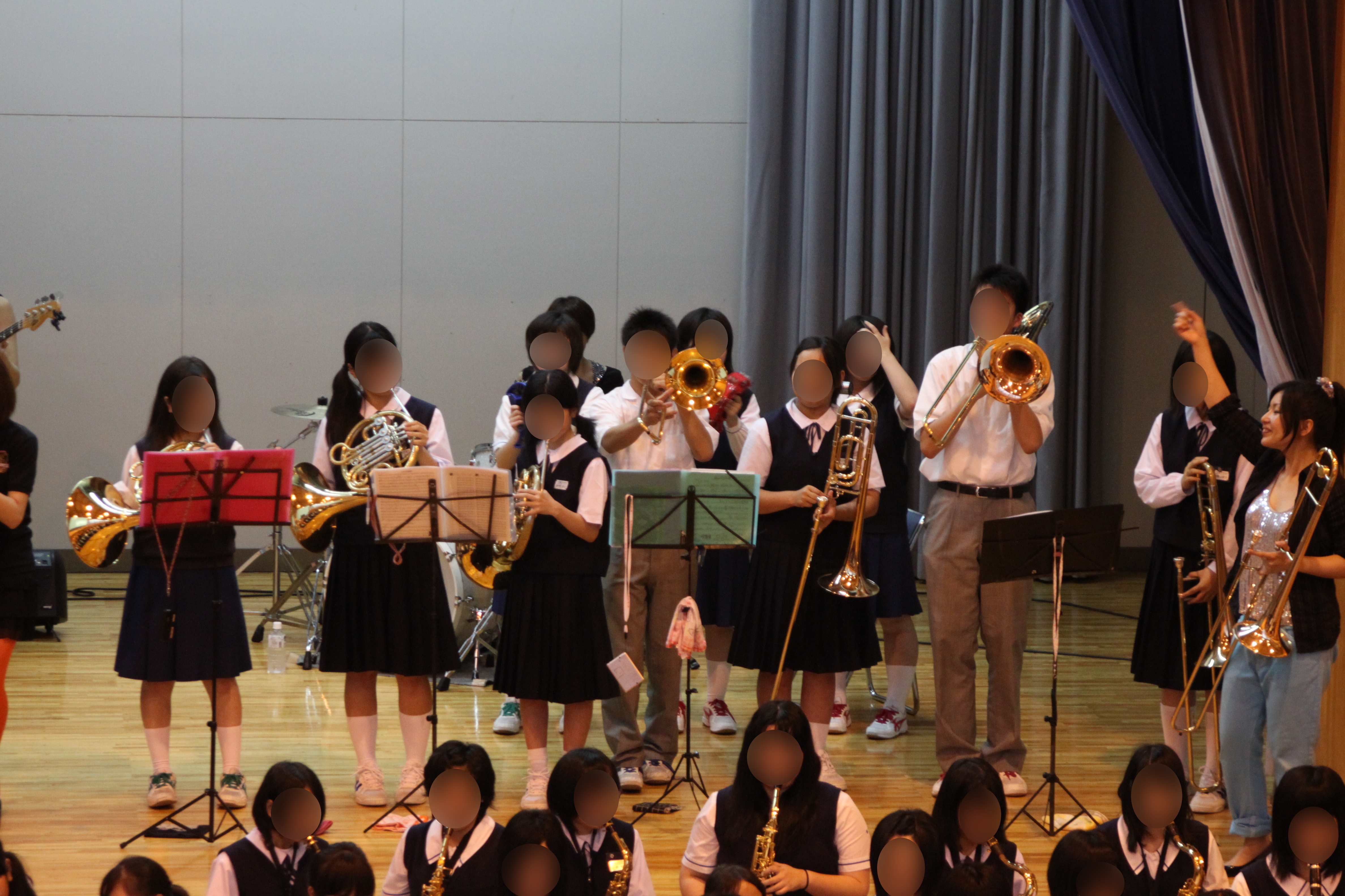 吉里吉里中学校体育館で開催された東京ブラススタイルと中学生の合同演奏の様子