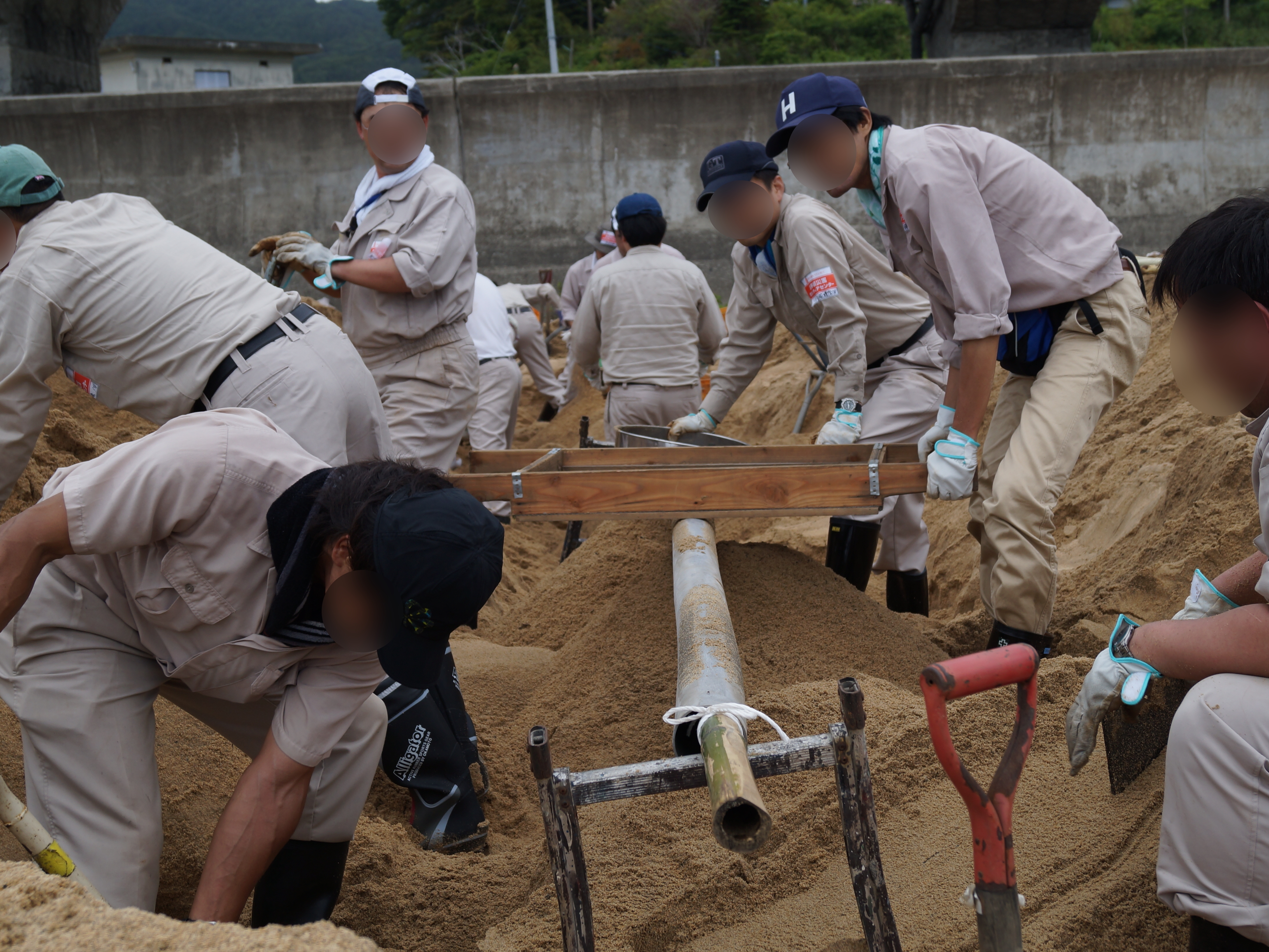 砂浜の中のガレキを分別して撤去している様子