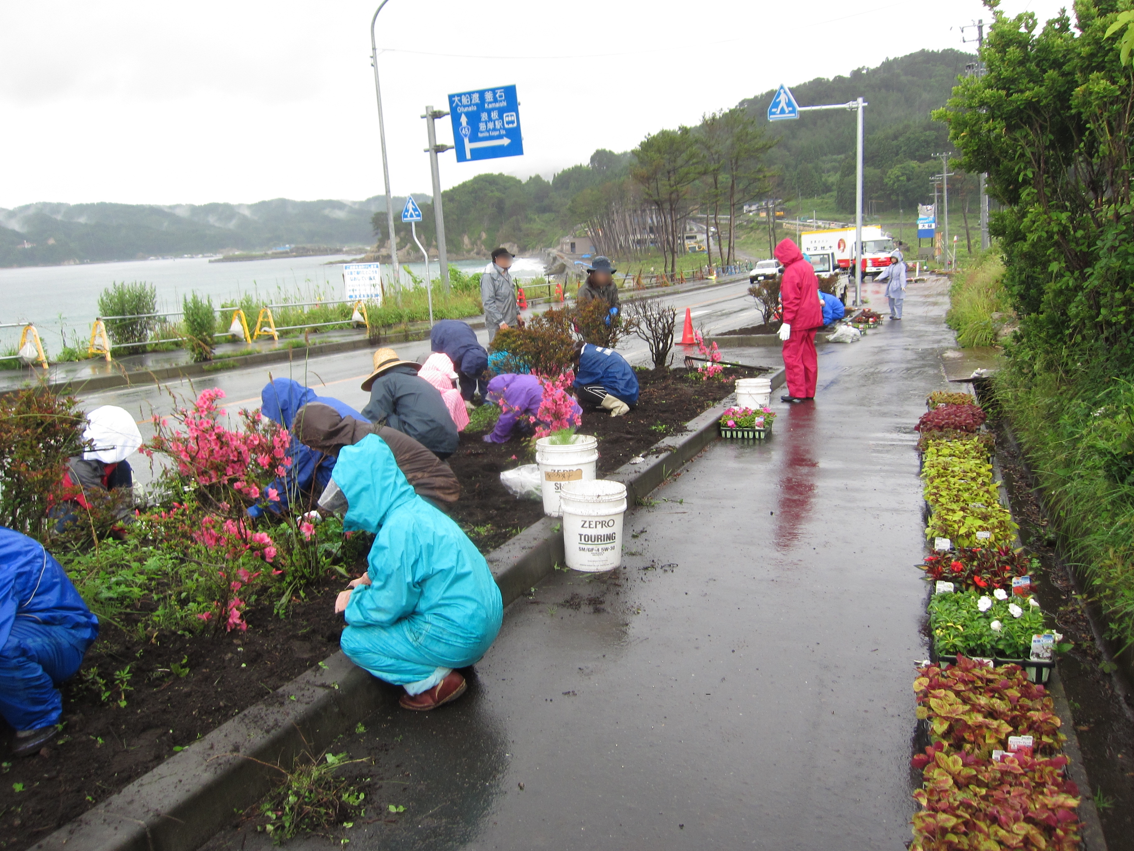 国道45号線周辺の花壇整備をしている様子