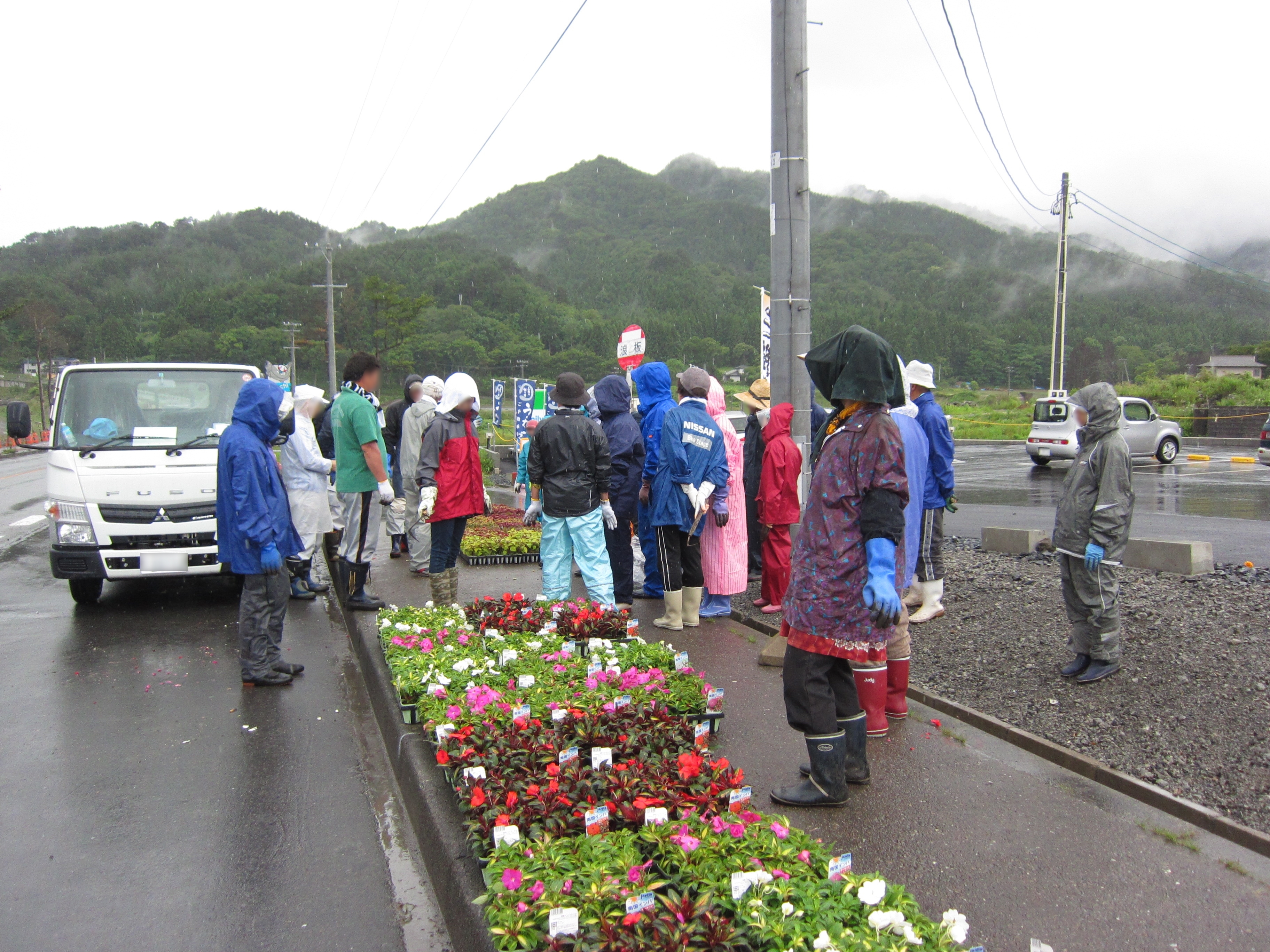 国道45号線周辺の花壇の前のボランテイアの様子