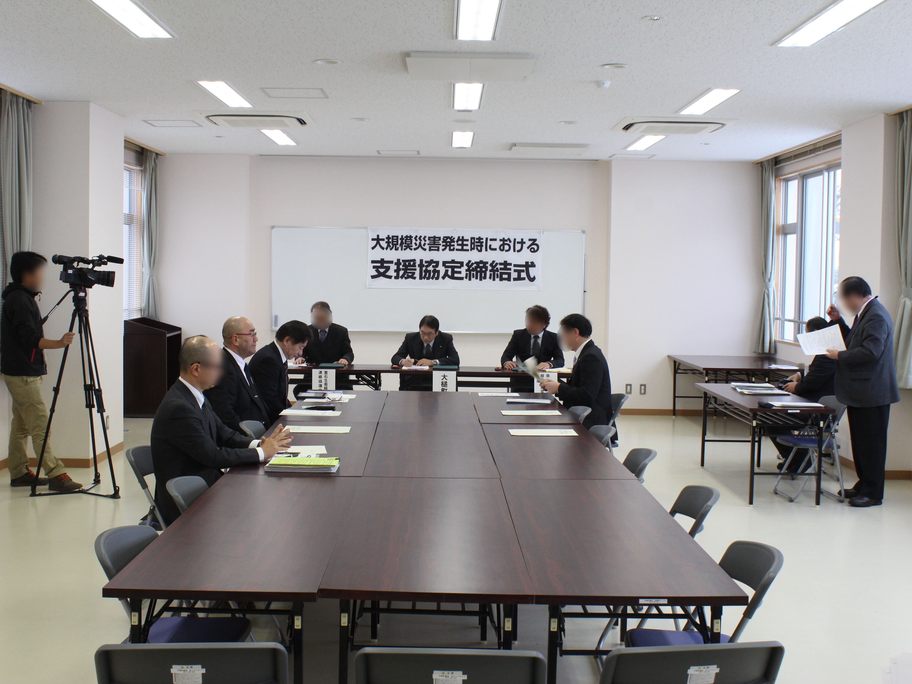 役場大会議室で開催された岩手県生活衛生同業組合、釜石地区生活衛生同業組合と大槌町の「大規模災害発生時における支援協定」締結式の様子
