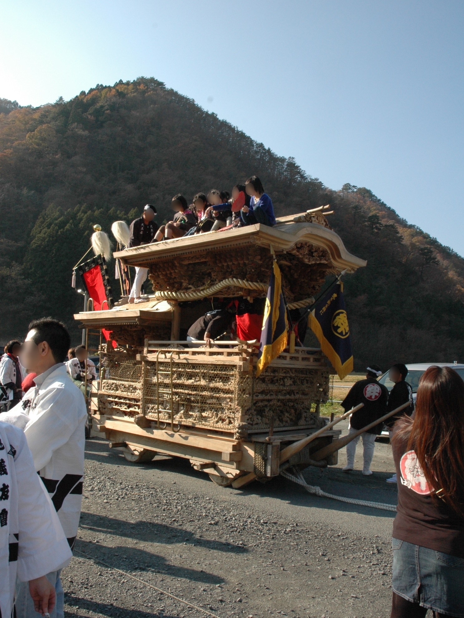 大阪府岸和田市の岸和田だんじりが和野の仮設住宅でだんじりを披露する様子