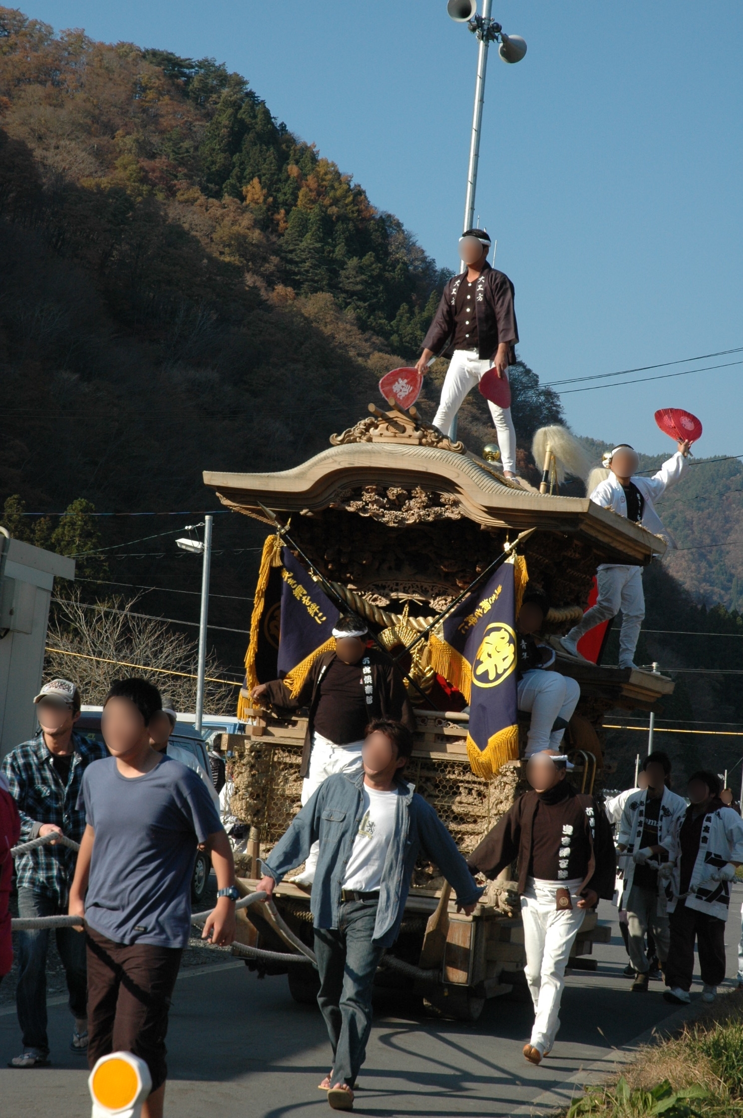 大阪府岸和田市の岸和田だんじりが和野の仮設住宅でだんじりを披露