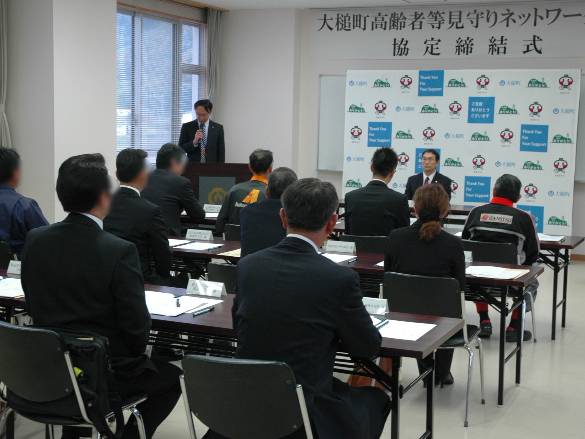 チョウナイデジギョウヲテンカイスル18ジギョウシャノカタガタトオオツチチョウノ「オオツチチョウコウレイシャトウミマモリネットワークジギョウキョウテイ」テイケツシキ