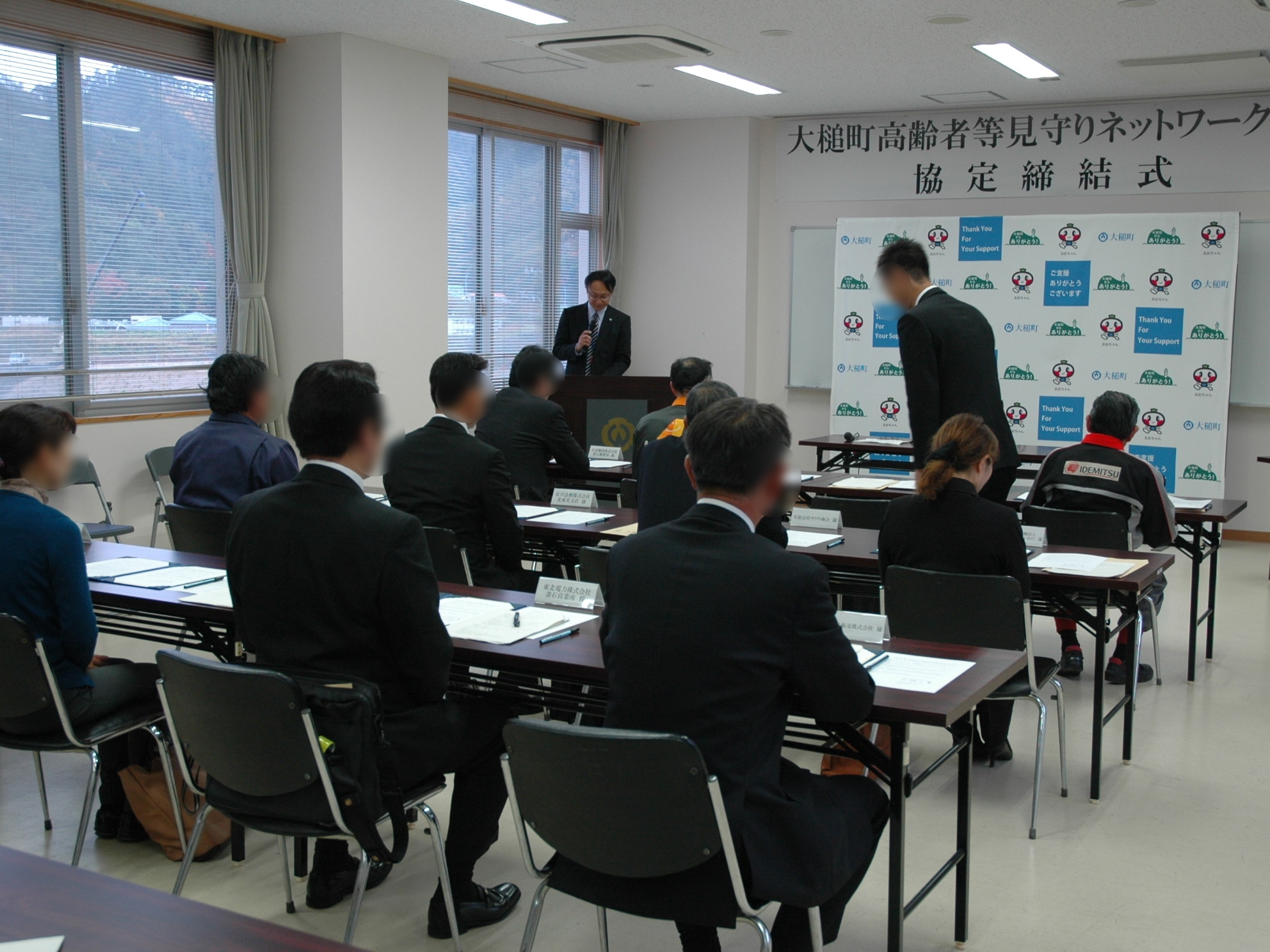 チョウナイデジギョウヲテンカイスル19ジギョウシャノカタガタトオオツチチョウノ「オオツチチョウコウレイシャトウミマモリネットワークジギョウキョウテイ」テイケツシキ