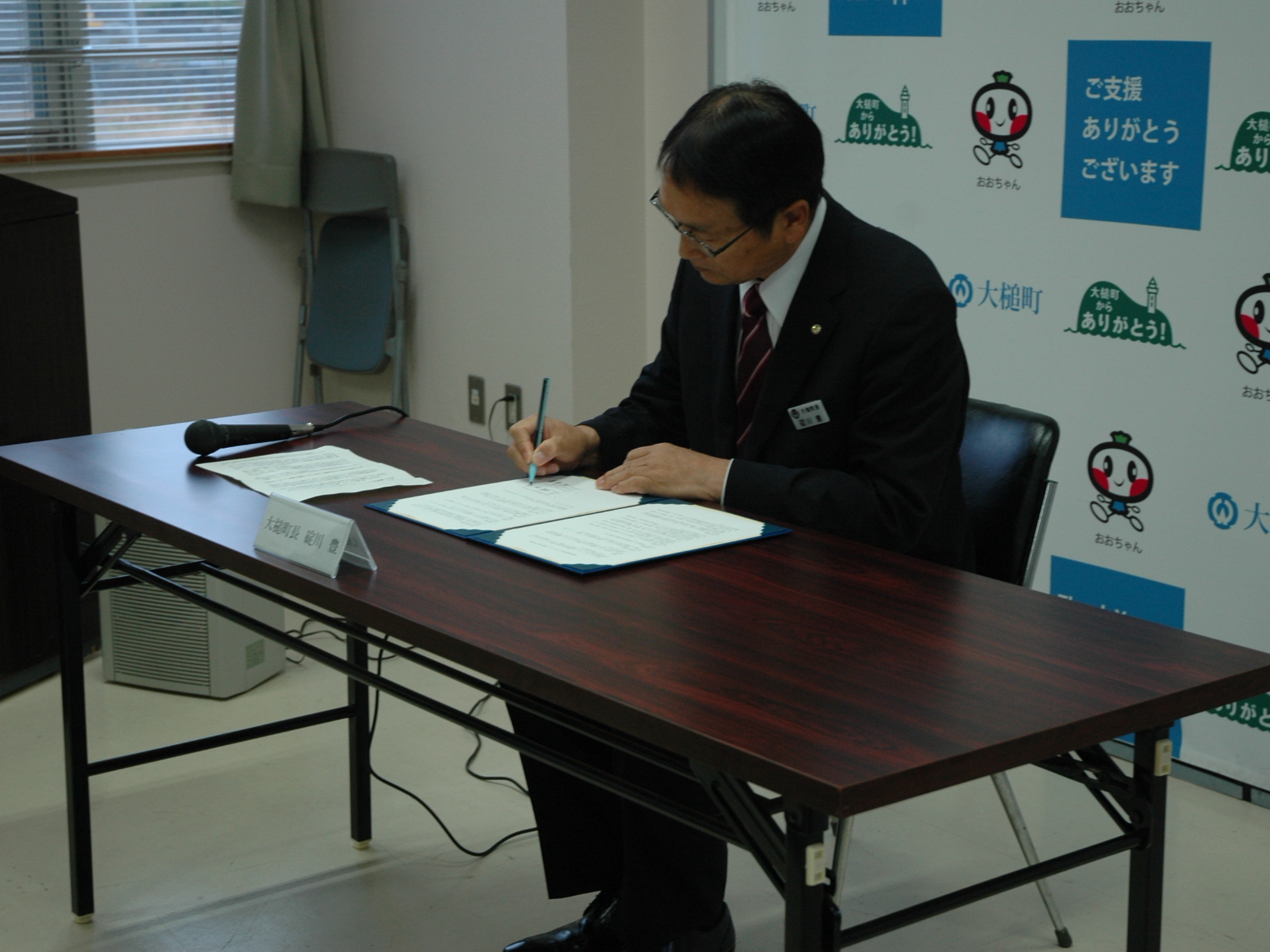 チョウナイデジギョウヲテンカイスル22ジギョウシャノカタガタトオオツチチョウノ「オオツチチョウコウレイシャトウミマモリネットワークジギョウキョウテイ」テイケツシキ