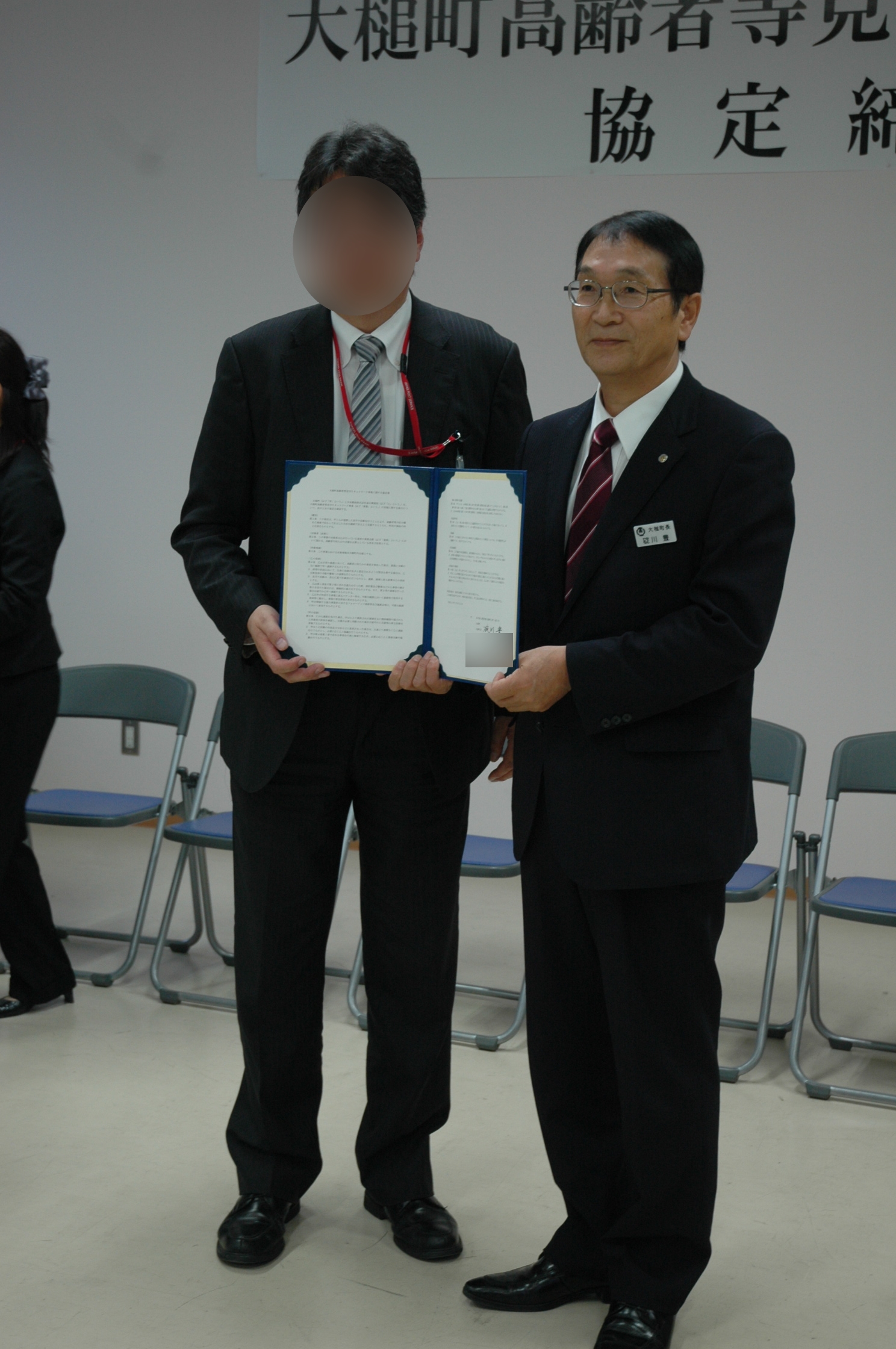 チョウナイデジギョウヲテンカイスル27ジギョウシャノカタガタトオオツチチョウノ「オオツチチョウコウレイシャトウミマモリネットワークジギョウキョウテイ」テイケツシキ