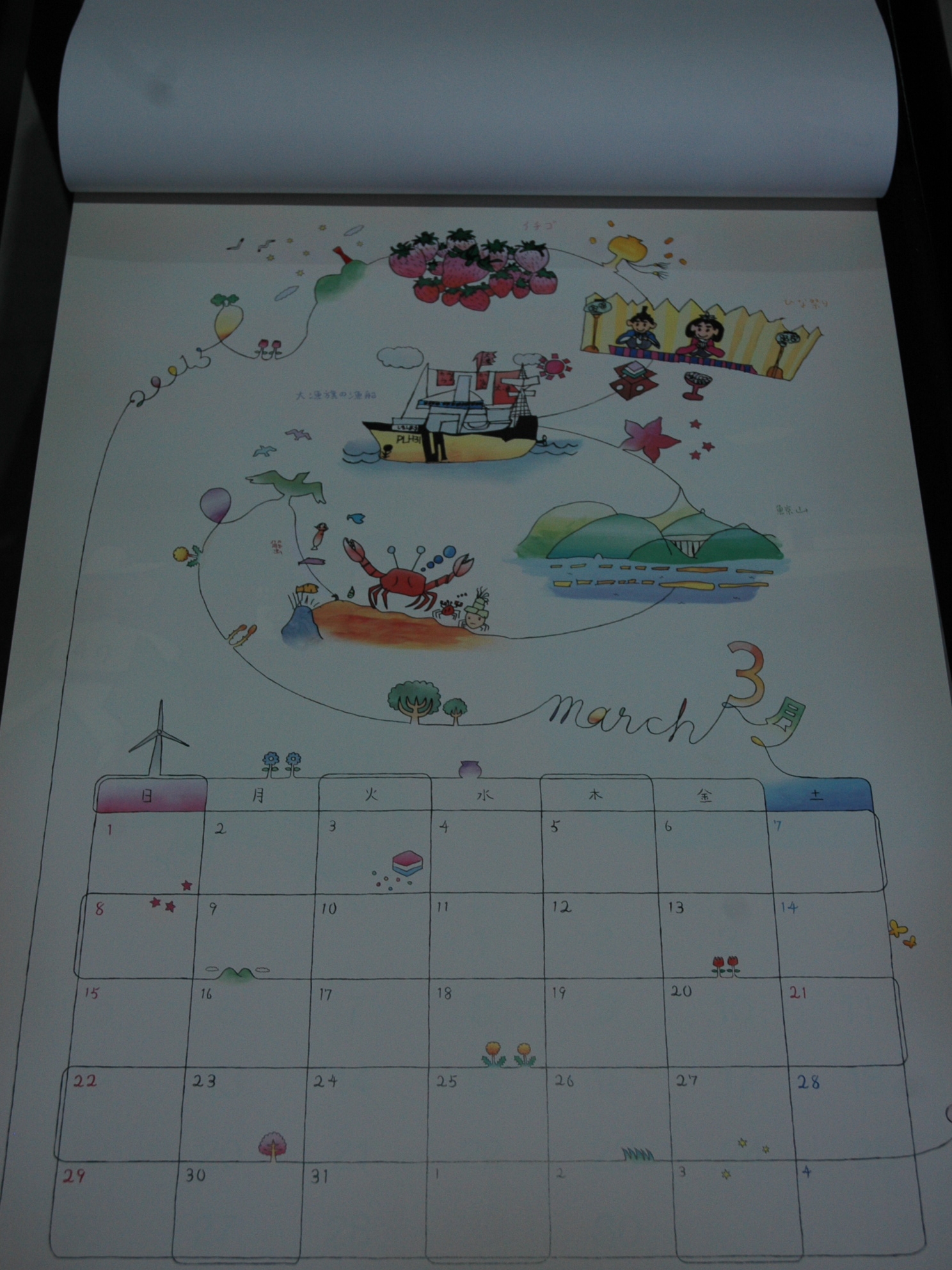 公益社団法人日本広告制作協会から寄贈された「大槌の宝カレンダー2015」 拡大表示 ダウンロード 識別子 : 5529 タイトルよみ : コウエキシャダンホウジンニホンコウコクセイサクキョウカイカラキゾウサレタ「オオツチノタカラカレンダー2015」 說明・要約 : 「大槌の宝カレンダー2015」の3月分 作成者(撮影者) : 大槌町 作成者(撮影者)よみ : オオツチチョウ 提供者 : 提供者よみ : 撮影(作成)場所 : 岩手県上閉伊郡大槌町 上町 撮影(作成)場所よみ : イワテケンカミヘイグンオオツチチョウ カミチョウ 作成日・撮影日 : 2014年 11月 14日 カテゴリー : その他 地域 : 町方地区 備考 : 震災事象 ボランティア・外部支援 > 企業・大学の事業再生・資源活用などの支援 > 大槌の宝カレンダーが寄贈
