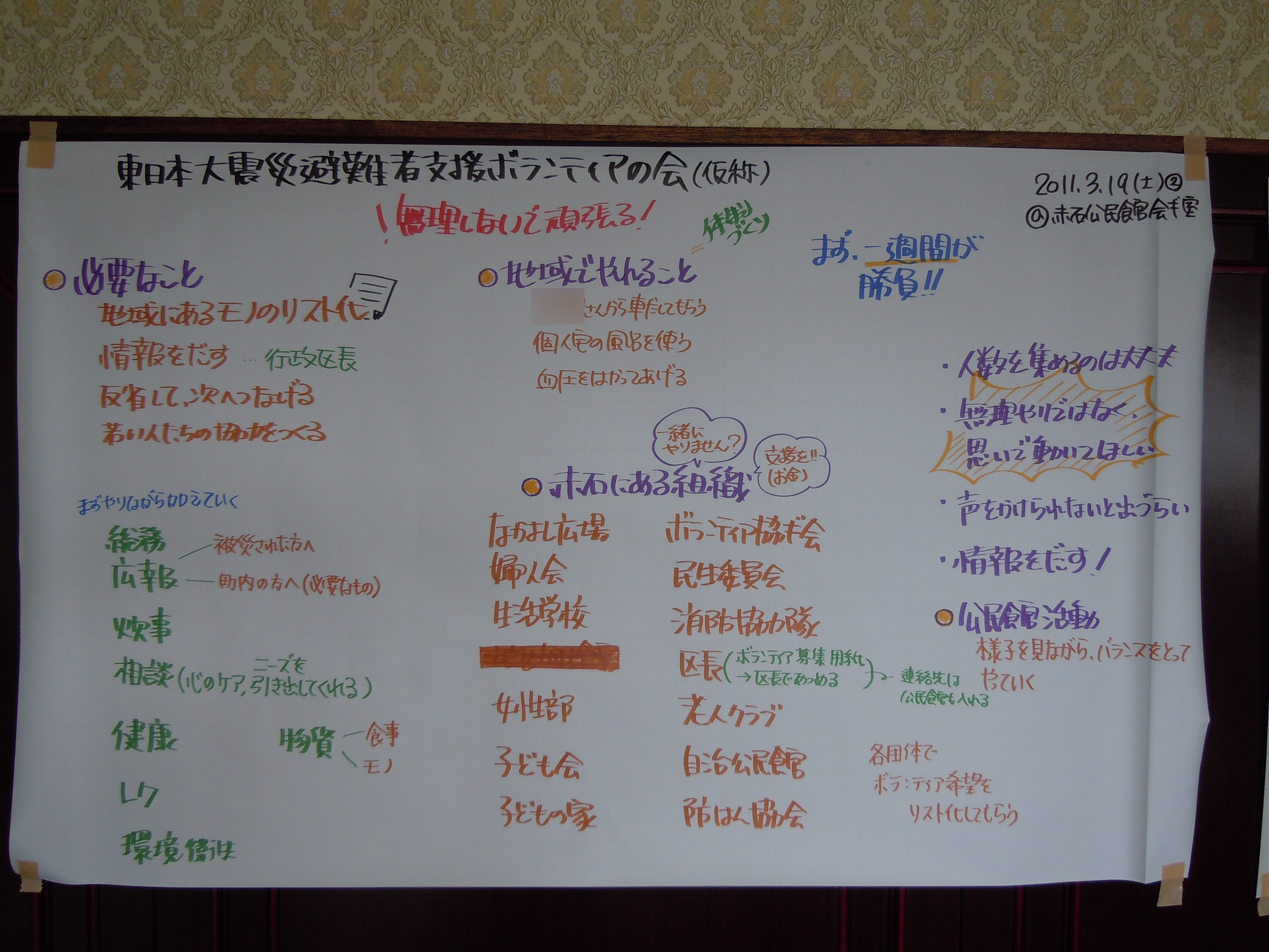 東日本大震災避難者支援ボランティアの会(仮称)発足にあたり話し合われた内容