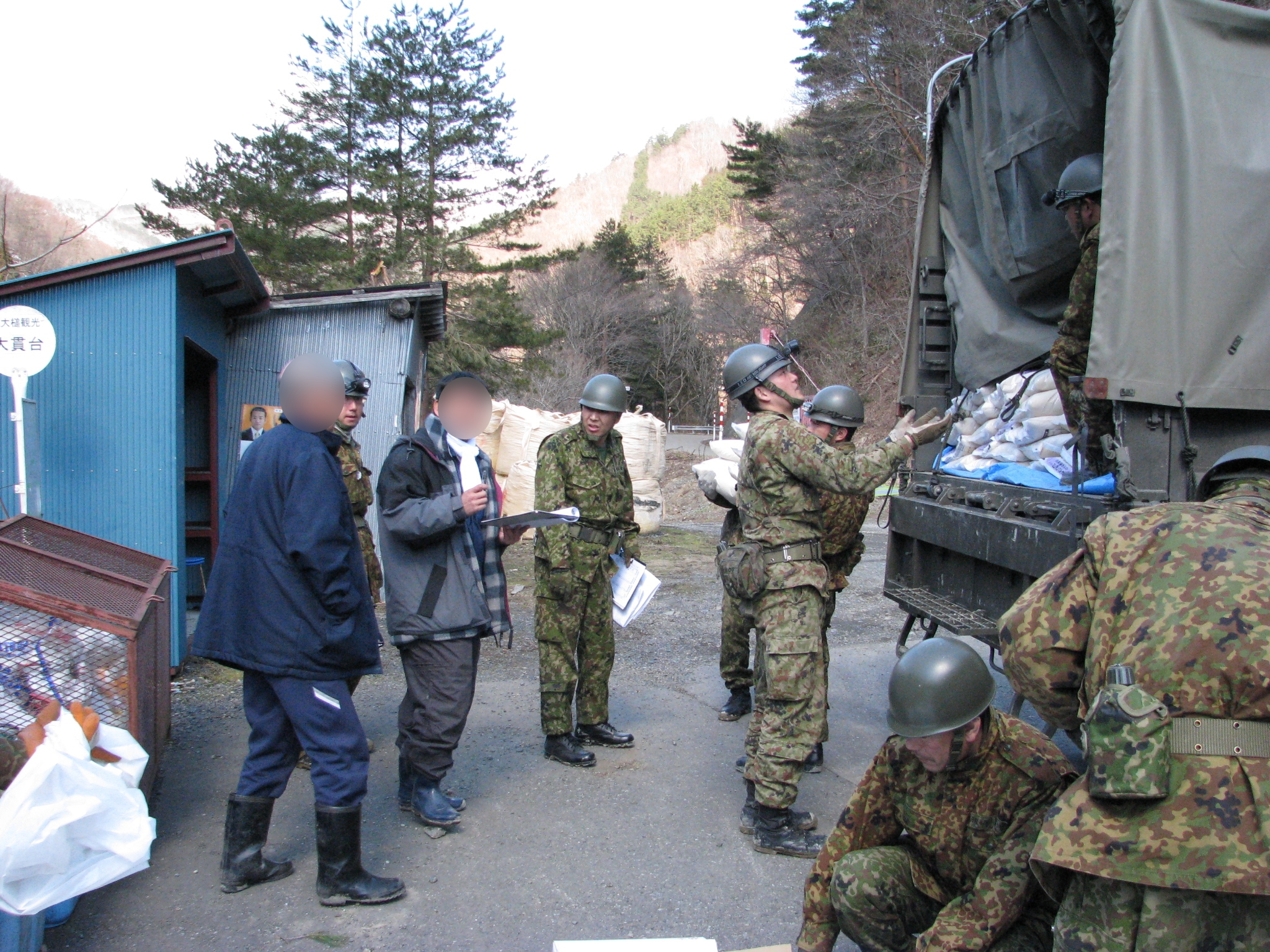 救援物資を車から降ろしている様子