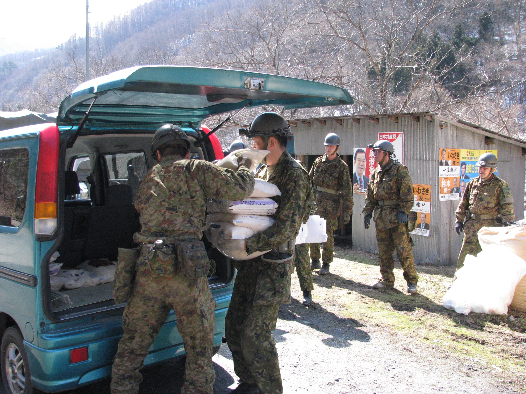 救援物資を配達している様子